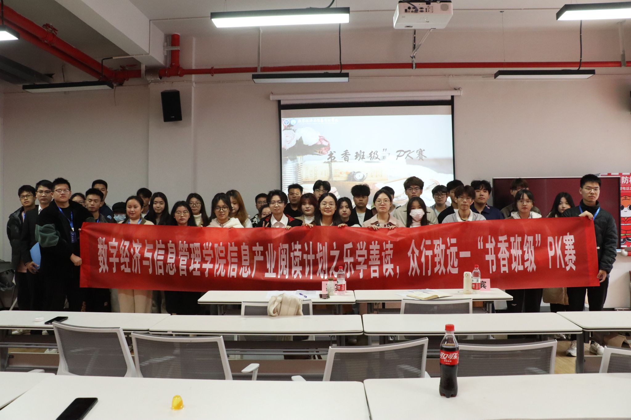 为营造校园书香阅读气氛,促进学生全面了解校园文化建设,推进书香校园建设工作,加强学风建设,提高学生人文素养,丰富学生精神文化生活,探索多元化、多层次、多形式的阅读活动,在书香氛围中培养学生阅读兴趣。数字经济与信息管理学院于2023年11月24日在玉棠书院扎堆朋辈空间成功举办了“乐学善读,众行致远”书香班级PK赛。比赛以班级的形式来品读经典书籍,营造书香氛围。本次比赛有幸邀请到数字经济与信息管理学院社团活动板块指导老师周静、宣传板块指导老师田园园作为评委嘉宾出席。