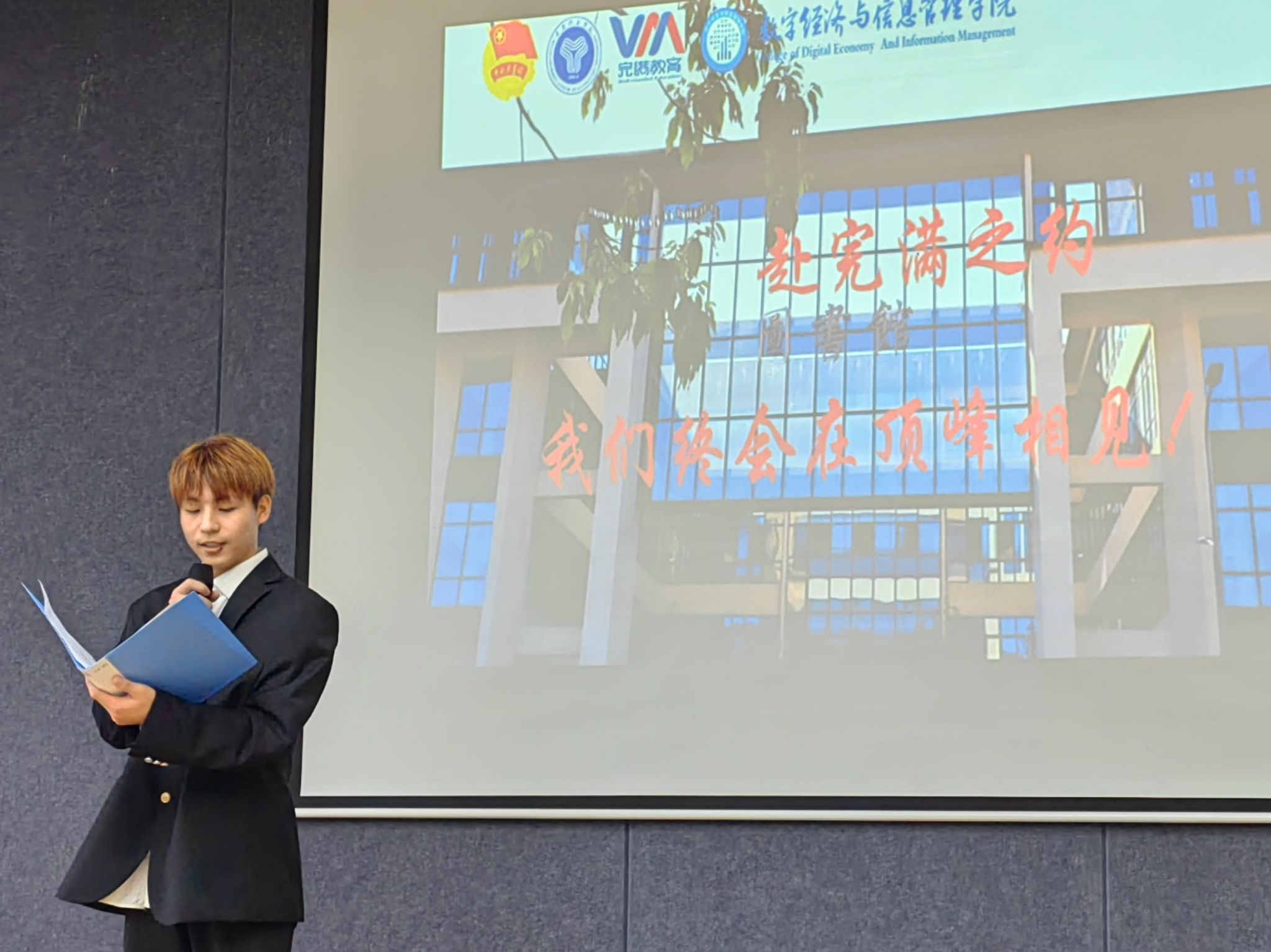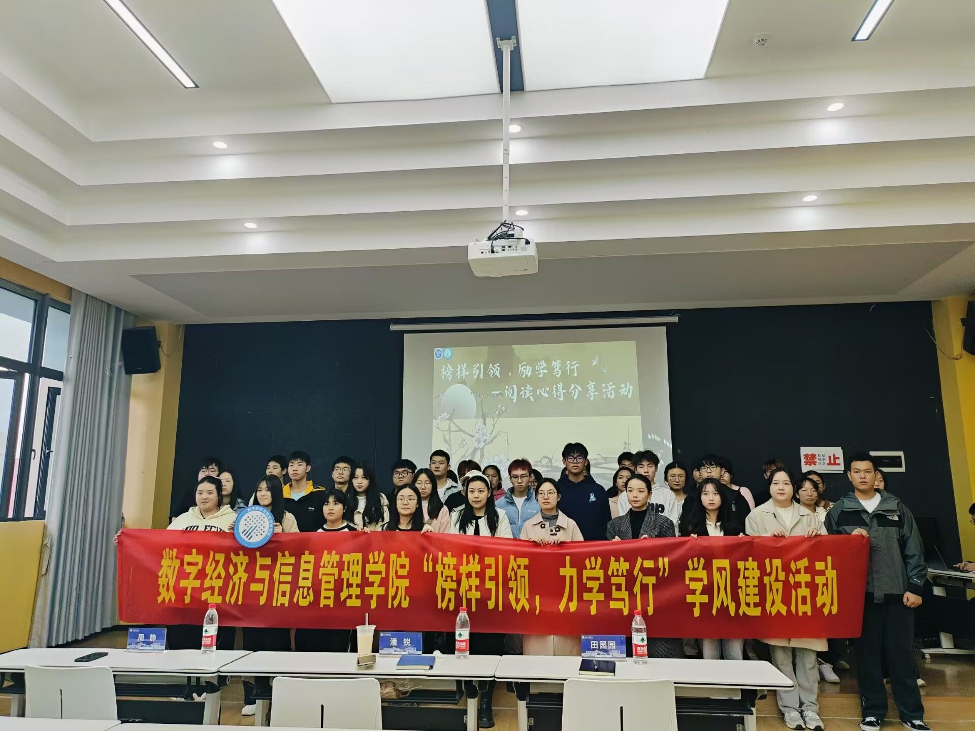 “清风园学子茂风华,百步梯书生逞意气。”学风是一缕清风,是一种氛围,是一种追求,更是一种精神。学风是一所学校校风的重要体现和核心要素,建设优良学风是建设优良校风的中心任务和根本保证。为深化教育教学综合改革,提高数字经济与信息管理学院的教学教育水平,促进我院学风建设,推动学院学生与教师素质综合发展。数字经济与信息管理学院于2023年11月29日,在我校瀛溪书院回声报告厅完满举行“榜样引领,力学笃行”学风建设活动。此次活动邀请到了我院团总支书记潘锐、社团活动板块指导老师周静、宣传板块指导老师田园园,以及四位优秀的学长学姐分享他们学习上的方法、完满活动的体验以及退役军人的相关经验等,他们的分享更好地助力了我院积极向上的良好学风建设,也为众多的学子提供了宝贵的启示。