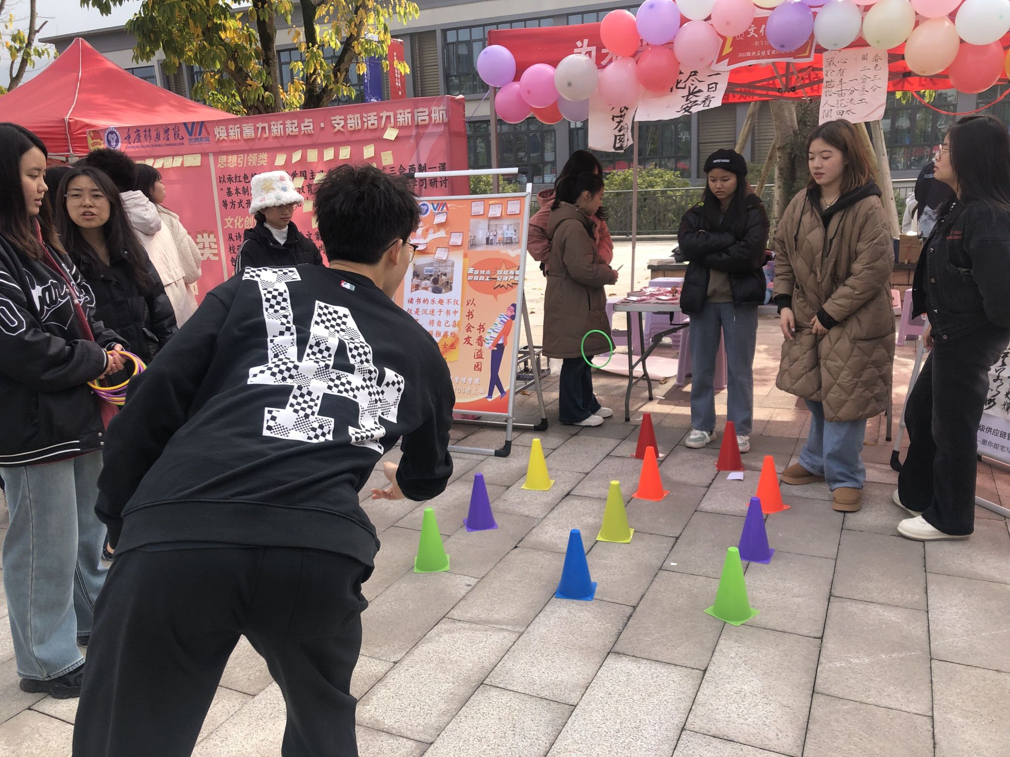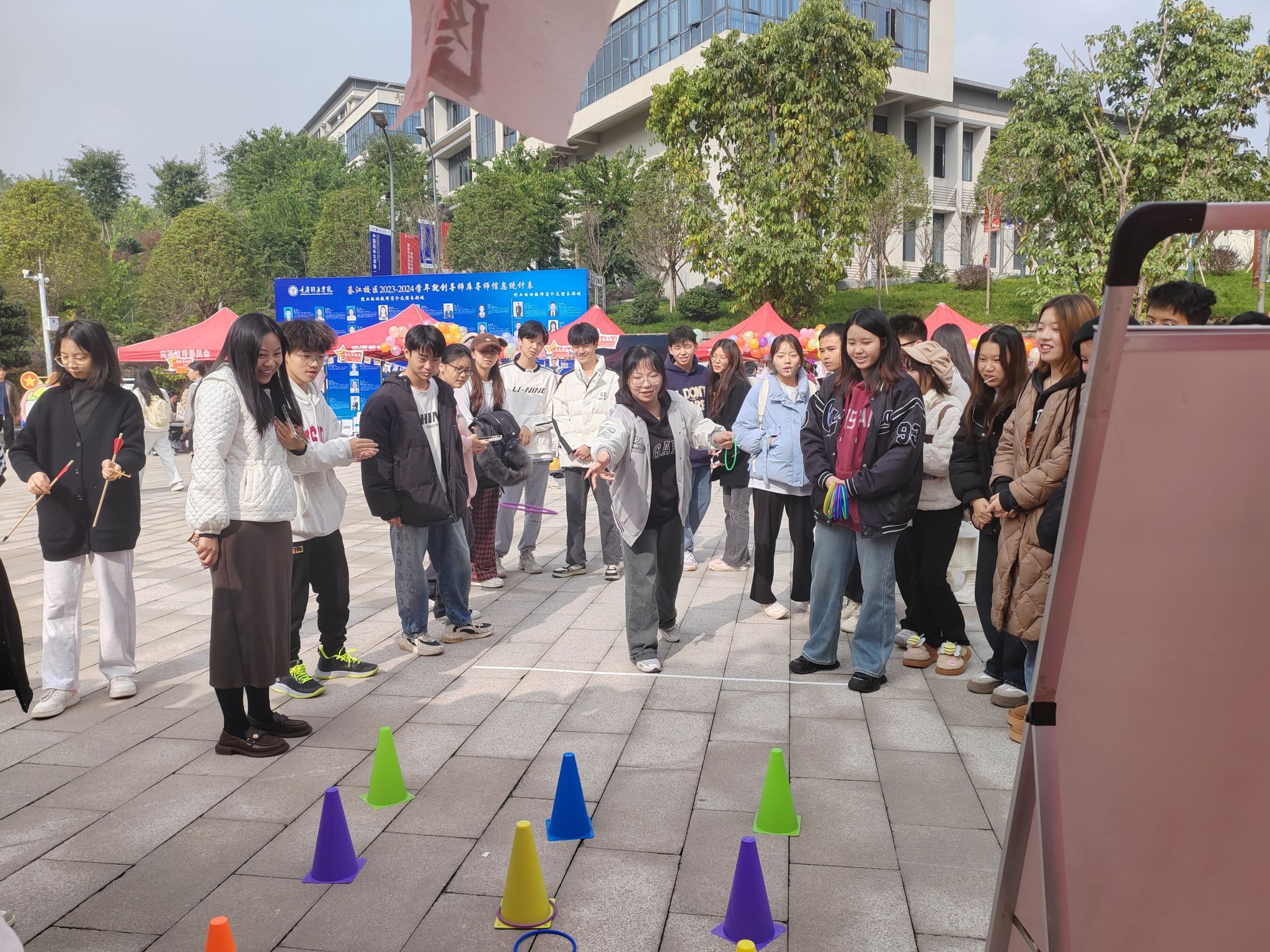 欢乐套圈圈,大显身手。套圈是很多人童年的一大美好回忆,有奖套圈环节将活动推向高潮,套圈活动吸引了大量的同学前来参观与体验2022级供应链管理03团支部的班级风采,在套圈过程中同学们的欢声笑语不断现场欢快氛围极其浓厚。通过套圈,可以获得书签、《西游记》的Q版人物摆件、《斗罗大陆》卡片等小礼品,大家在参与活动的同时,获得小礼品又参与班级文化的氛围中来,既愉悦了身心又充实了心灵。
