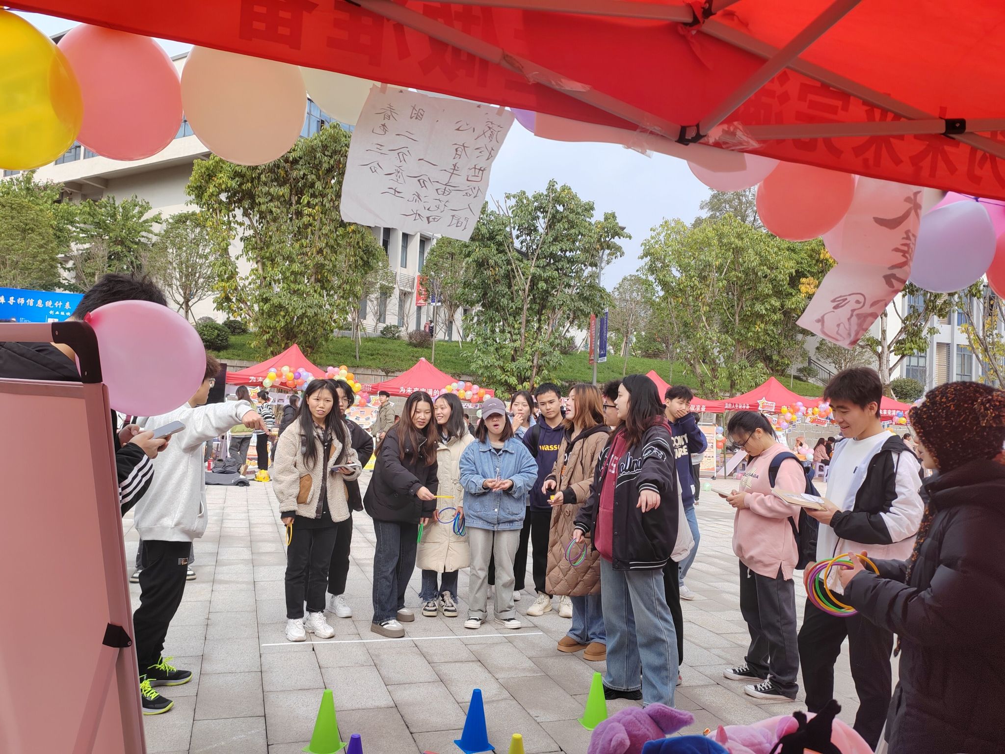 本次展示由“文学作品推广与讲解”“书法才艺现场展示”“有奖套圈”“执笔写下诗和远方”等一系列活动环节进行构成。活动开始,由主持人为风采展示进行活动环节的现场介绍和规则讲解,风趣幽默的语言讲解吸引了许多同学参与到活动中来,活动现场热闹非凡。
