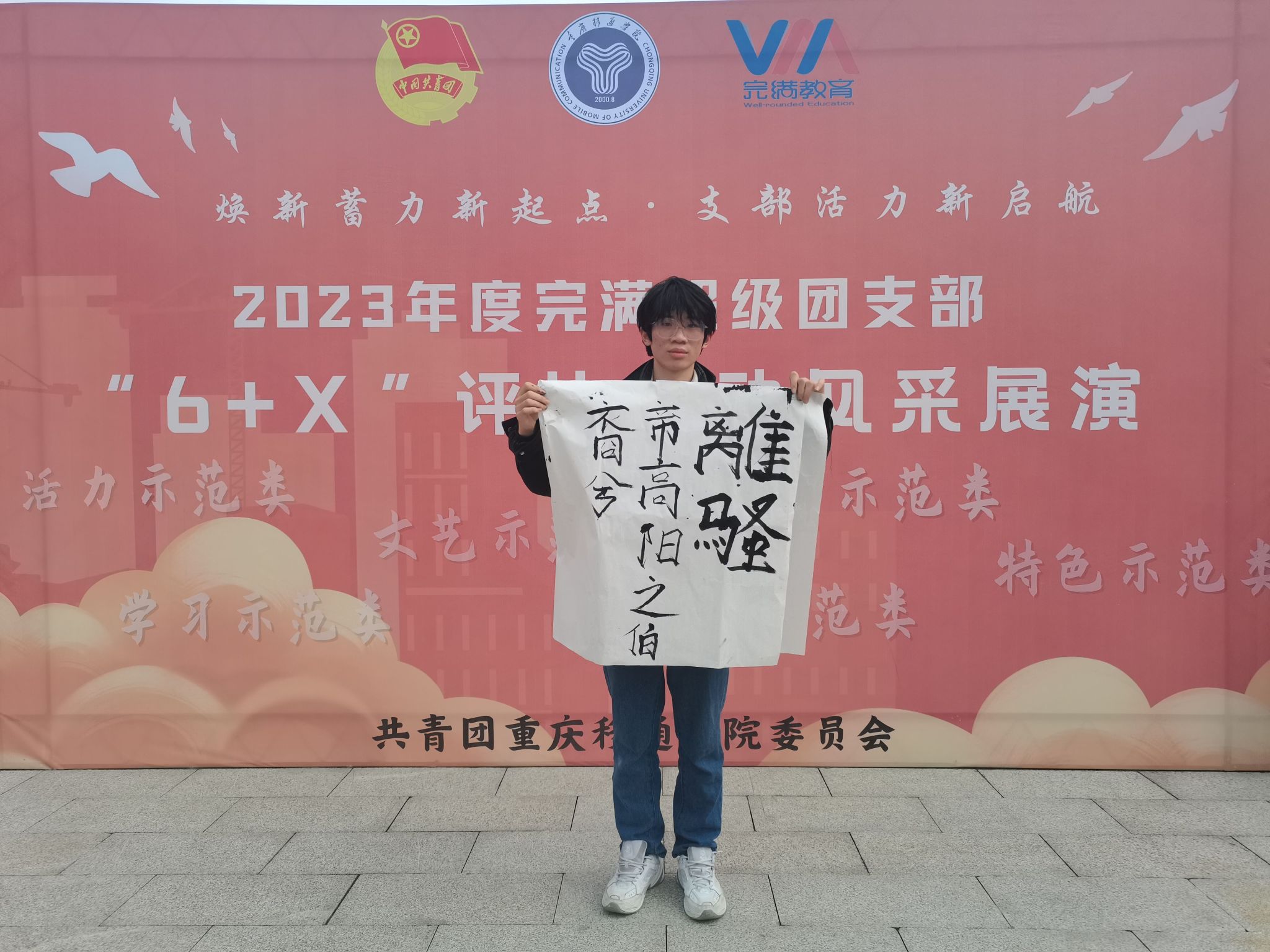 风采展现风貌,班级风采是一个班级精神风貌的展现,也是班级文化与班级理念的体现。为进一步推进班团文化建设,展示特色班级风采,2023年12月4日,2022级供应链管理03团支部在重庆共青团移通学院委员会的组织下,在图书馆广场上参加了“2023年度完满超级团支部6+X”评比活动第二轮“完超”户外风采展示,尽情展现出班级完超风采。