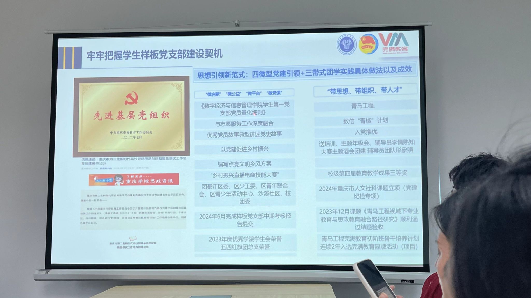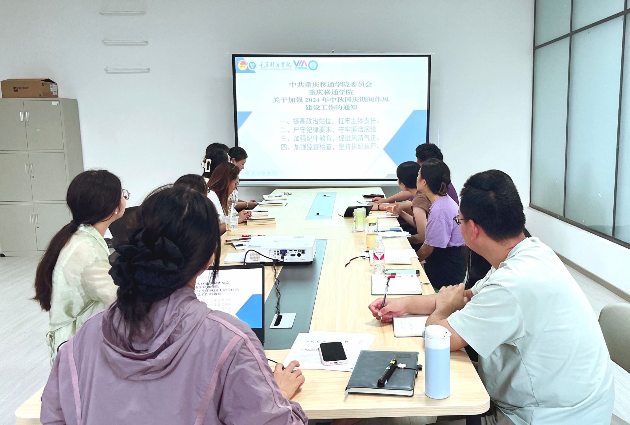 为加强学工队伍建设,提升辅导员专业素养,帮助新生辅导员深入了解“四位一体双院制+特色课程”育人理念,2024年9月14日16:00,数信学院开展了青椒成长计划第11讲暨2024-2025学年第一学期中秋国庆前安全工作部署会。会议由学工副院长任瑞娟主持,綦江校区全体辅导员参加。