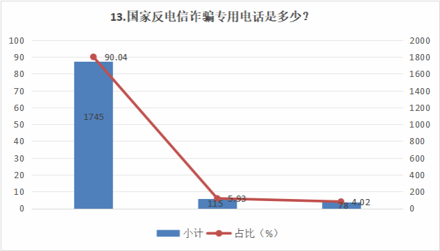 10.90%的同学正确知晓国家反电信诈骗专用电话,可见学生对国家反电信诈骗专用电话的认知度较高,但仍需进一步加强宣传普及。