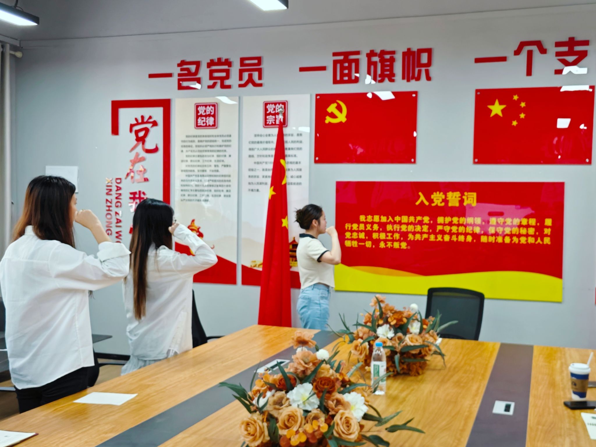 接下来,在党支部书记任超群同志的带领下,全体党员同志心怀崇敬,在鲜艳的党旗与国旗见证下,共同重温入党誓词。誓言铿锵有力,回荡在会场每一个角落,不仅是对初心的深情回望,更是对未来征程的坚定承诺。我们誓将不忘初心,牢记使命,以更加昂扬的斗志,砥砺前行,在新时代的征程上续写辉煌篇章!