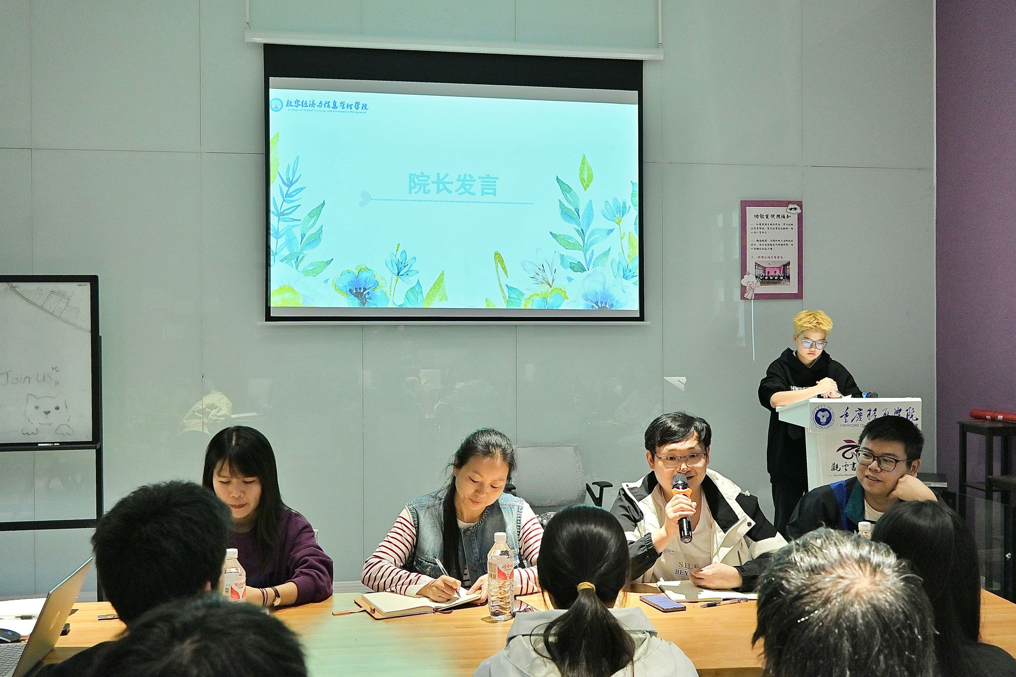 为让新生们在日常生活中更加了解我们校园、制定自己的人生规划、帮助同学们能够在校园肆意成长,数字经济与信息管理学院于10月8日在观云书院立冬·朋辈交流空间开展了“面对面交流,心与心交融”2024-2025学年第一学期第六周院长接待日暨座谈会。本次会议有幸邀请到了数字经济与信息管理学院院长刘贵容教授、教学副院长王哲副教授、学工副院长任瑞娟副教授,以及供应链管理教研室骨干教师代表陈泰岳老师,辅导员付孟文老师作为嘉宾,2024级供应链管理专业学生代表参加活动。