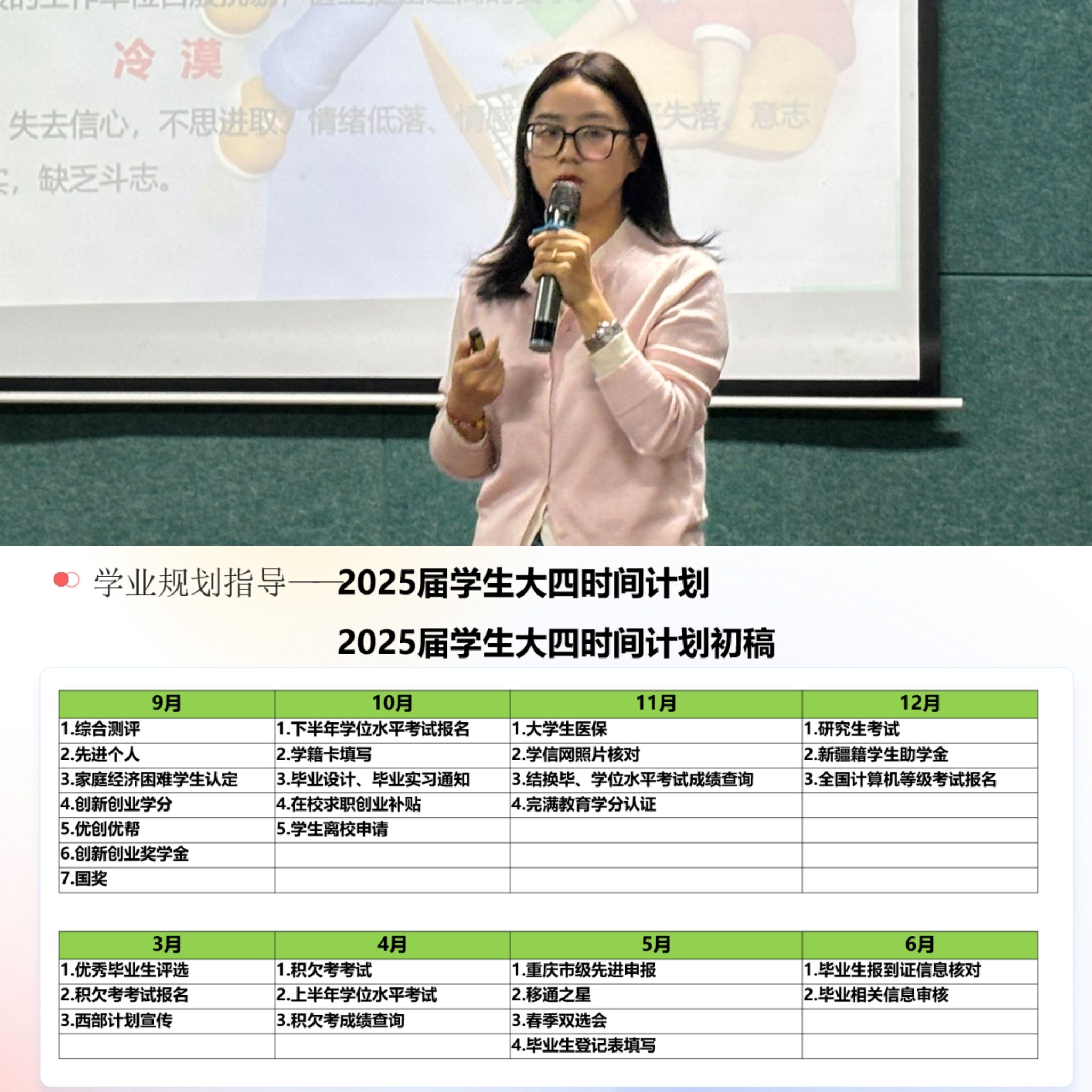 针对即将毕业的学子,刘老师特别提醒,要合理规划时间,确保完成学位考试,核对并补足教育学分,及时提交离校手续及就业协议。她着重强调了平衡实习与论文写作的关键性,提醒每位同学对自己的决定负责,做好周全准备。