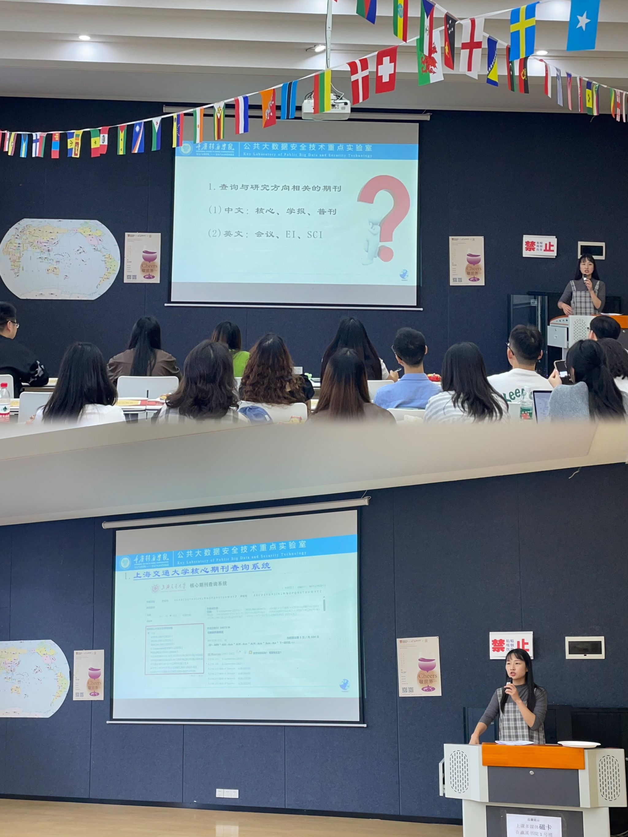 会上,王超男老师就文献检索分享、研究方向、撰写与投稿与专利申请四个方面做出经验分享。她以生动的语言和丰富的实例,从查询方法到专利申请进行了详细的讲解,阐述了自己的科研方向和近年来的研究成果。