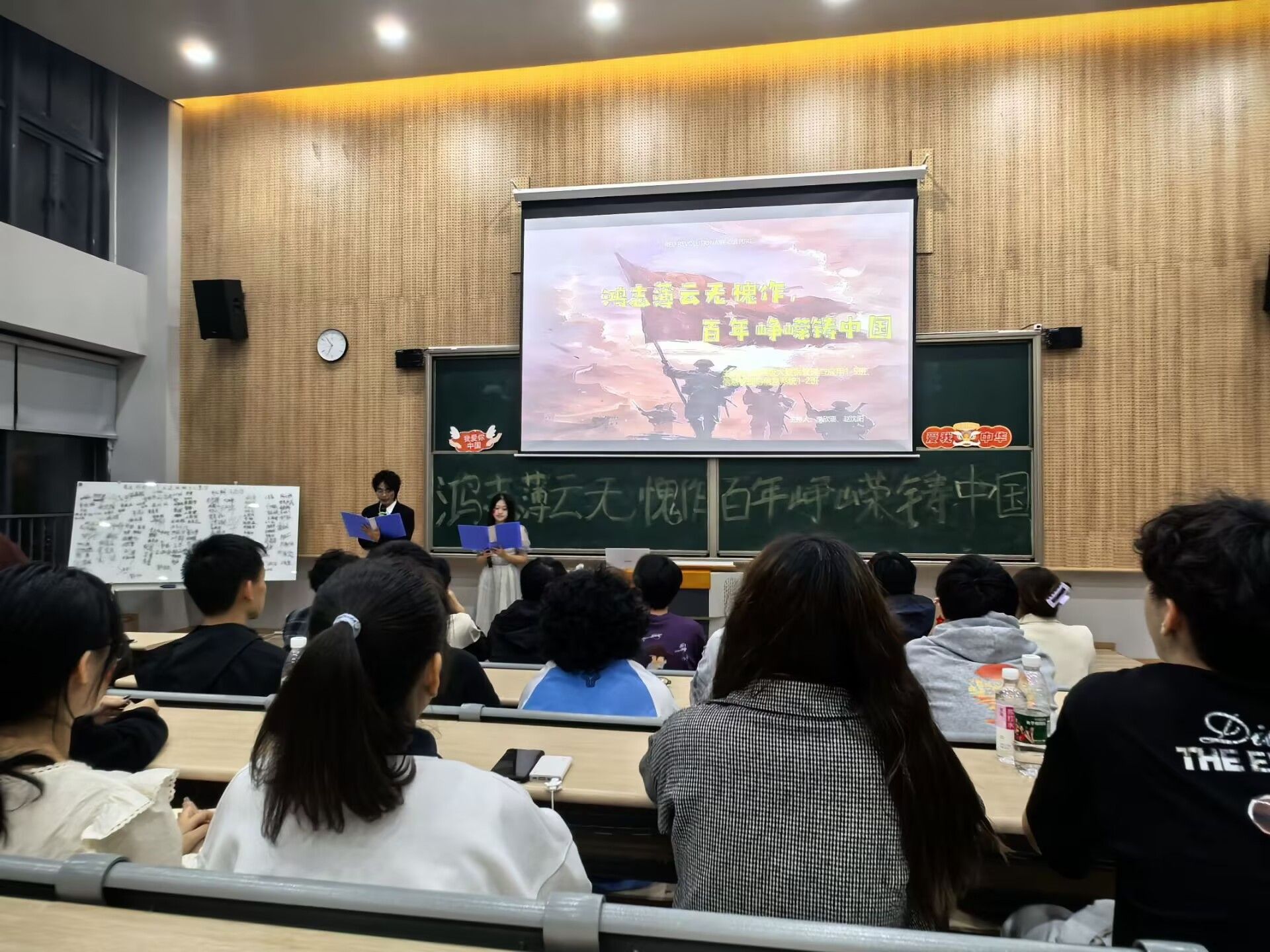 “历史是一堆灰烬,但灰烬深处仍有余温”。回顾历史,为深入贯彻中华民族优秀文化,弘扬红色精神,致敬先烈,增强同学们的文化认同、文化自信,激发同学们的爱国情怀,数字经济与信息管理学院于2024年10月24日18:30在横山书院阶梯教室举办一场以“鸿志薄云无愧怍,百年峥嵘铸中国”为主题的年级会。
