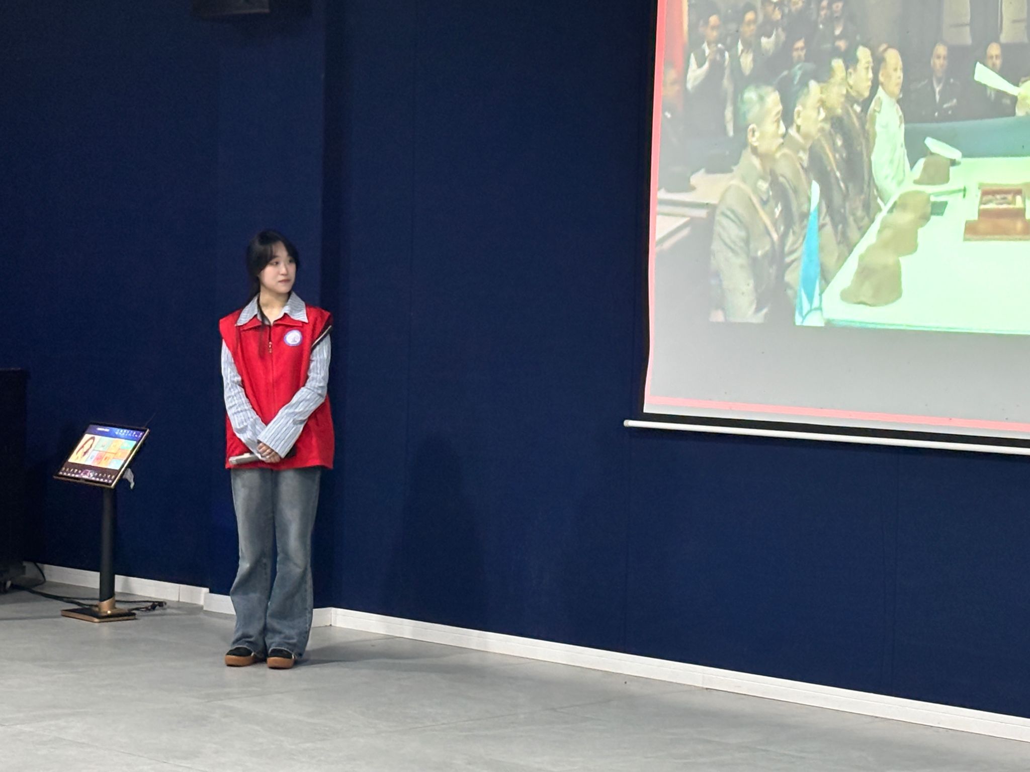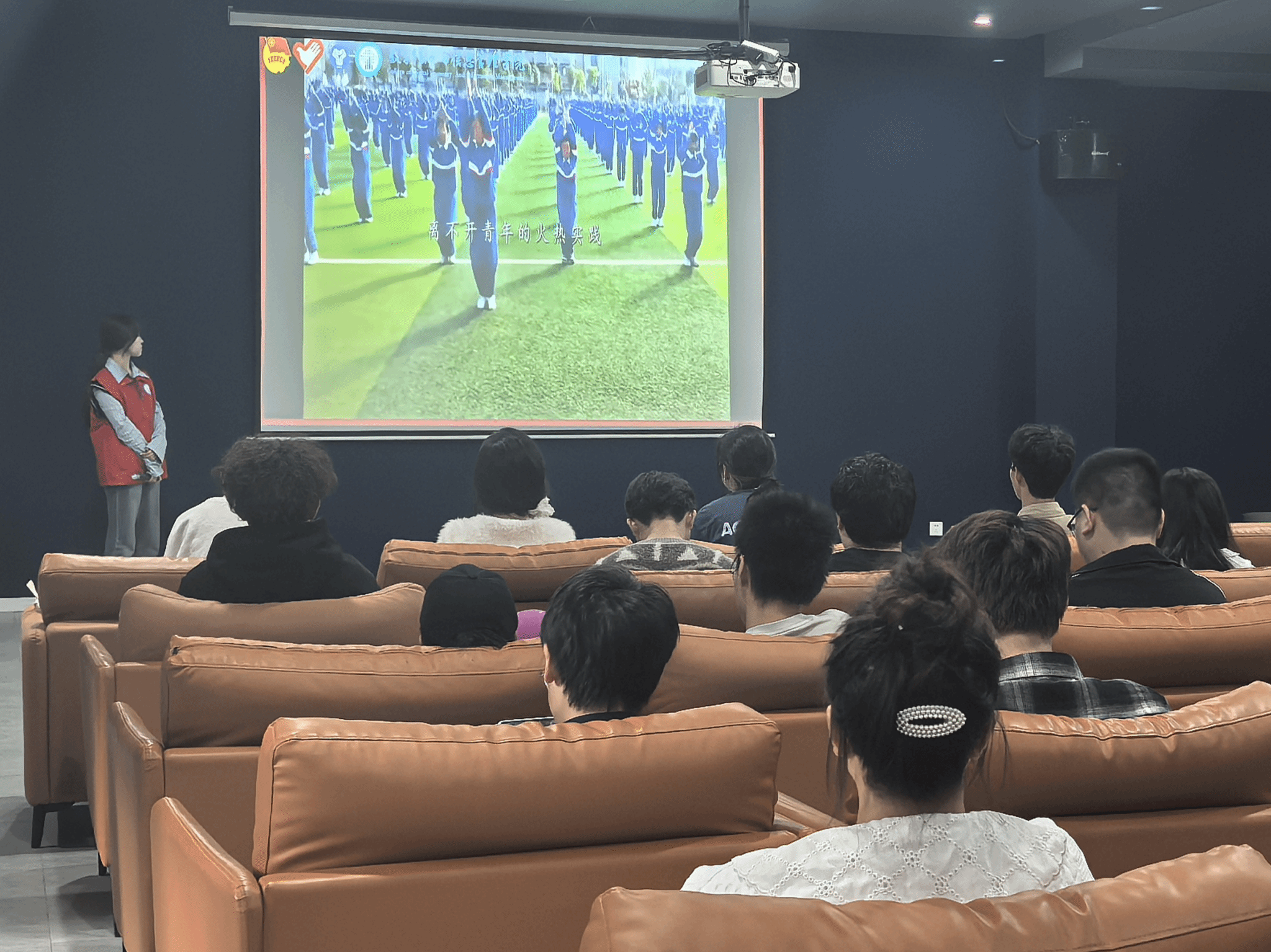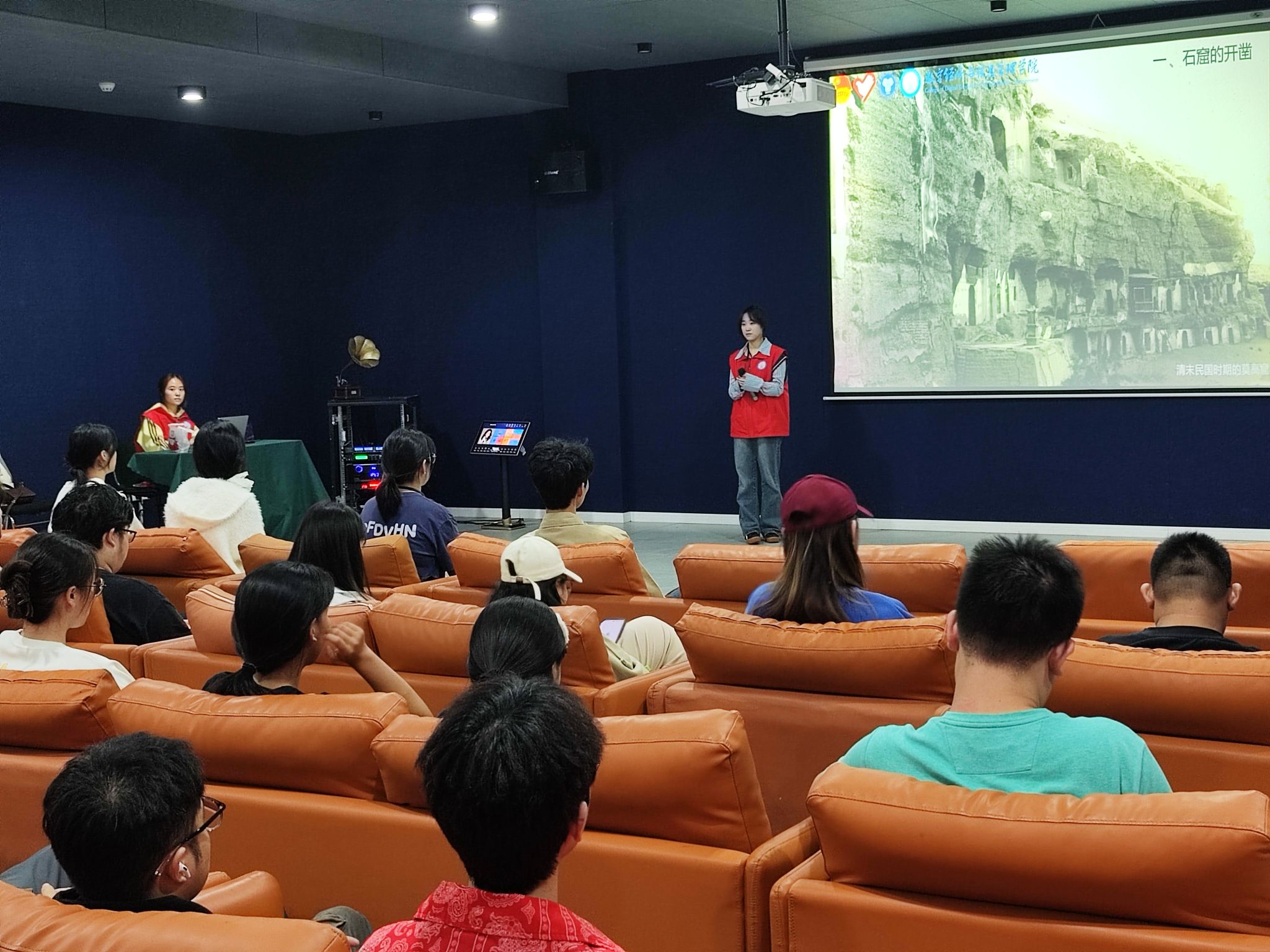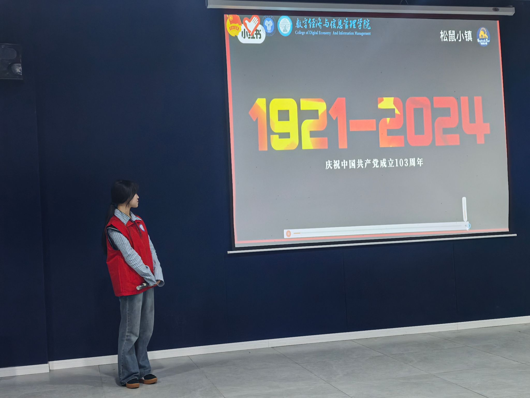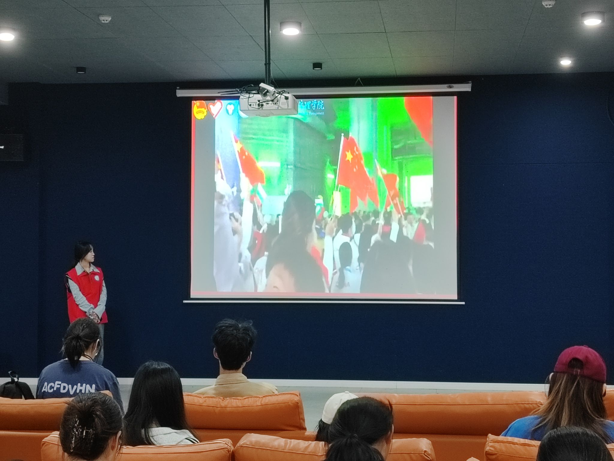活动伊始,同学们纷纷就座,满怀期待地等待着红色课堂的开启。此次活动主持人向诗琪主要从三个方面进行讲述:一是建党历史的回顾,二是红色革命故事的分享,三是青春与党的奋进之路。