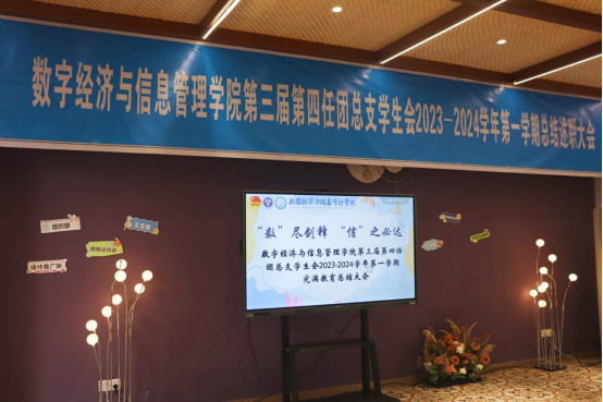 述职总结亮实绩,奋楫扬帆启新程。岁序更替,华章日新,为了加强学生组织部门间的交流,增进学生组织内部团结力和凝聚力,总结交流本学期工作经验,有效调动学生工作的积极性,数字经济与信息管理学院团总支学生会于12月20日下午14:00在重庆移通学院綦江校区观云书院芒种功能室,开展了数字经济与信息管理学院第三届第四任团总支学生会2023-2024年第一学期学院学生会完满教育总结大会。出席本次会议的有数字经济与信息管理学院学工副院长任瑞娟老师、学工办主任任超群老师、团总支书记潘锐老师、宣传推广版块指导老师田园园、志愿服务版块指导老师张静、竞技体育版块指导老师王健、艺术修养与实践版块指导老师杨必菊、以及社团活动版块指导老师周静老师。