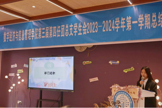 “星光不问赶路人,时光不负实干者。”紧接着各个部门干部进行学期工作总结,他们在总结中详尽展示了各部门在过去一段时间所举办的各种活动和项目,通过统计数据分析和生动演示,全方位呈现了这些活动的规模、影响力以及收获的巨大成就。每个部门精心呈现的述职总结更是突出强调了他们在活动过程中所遭遇的挑战,并针对这些挑战提出了切实可行的解决方案。