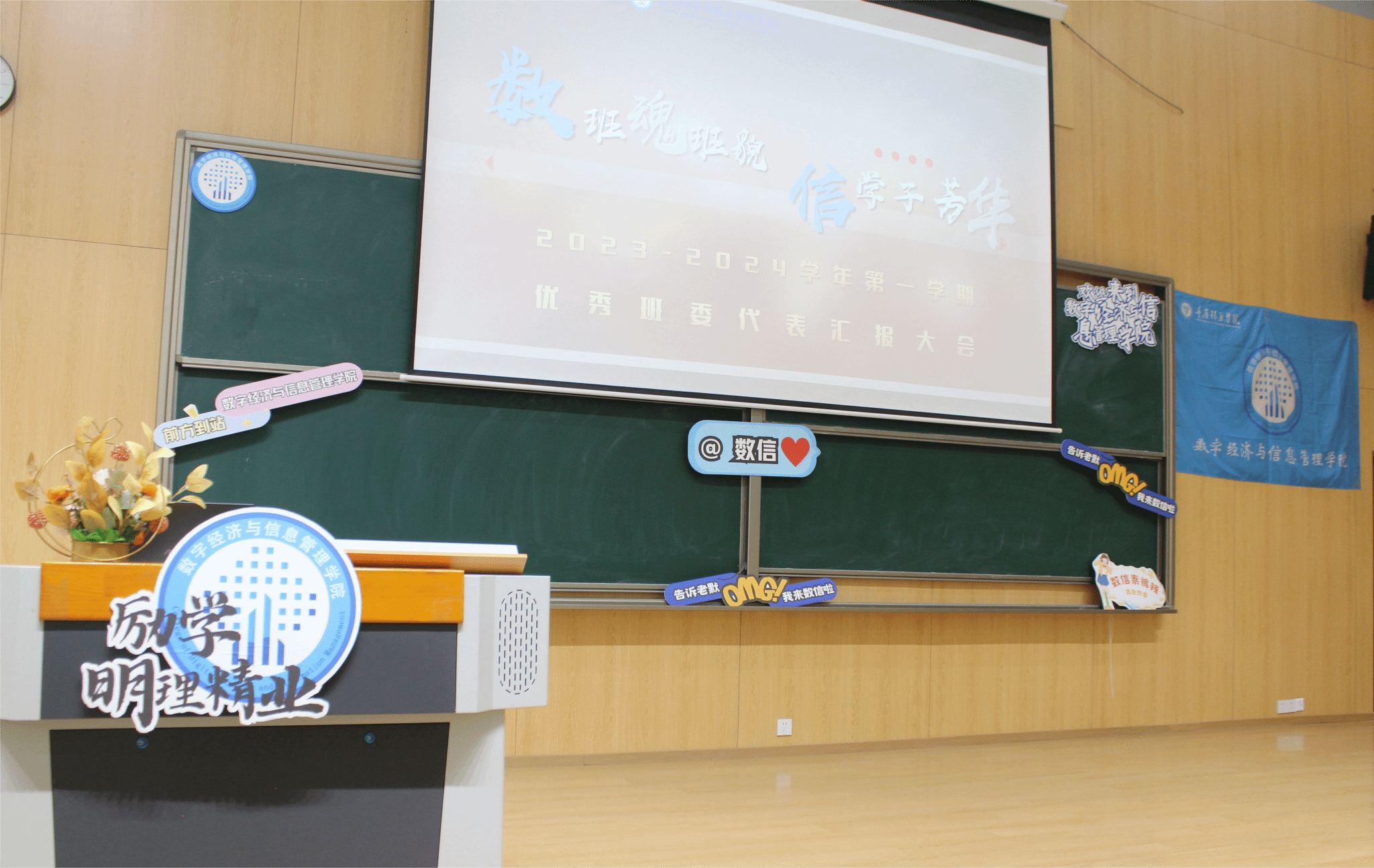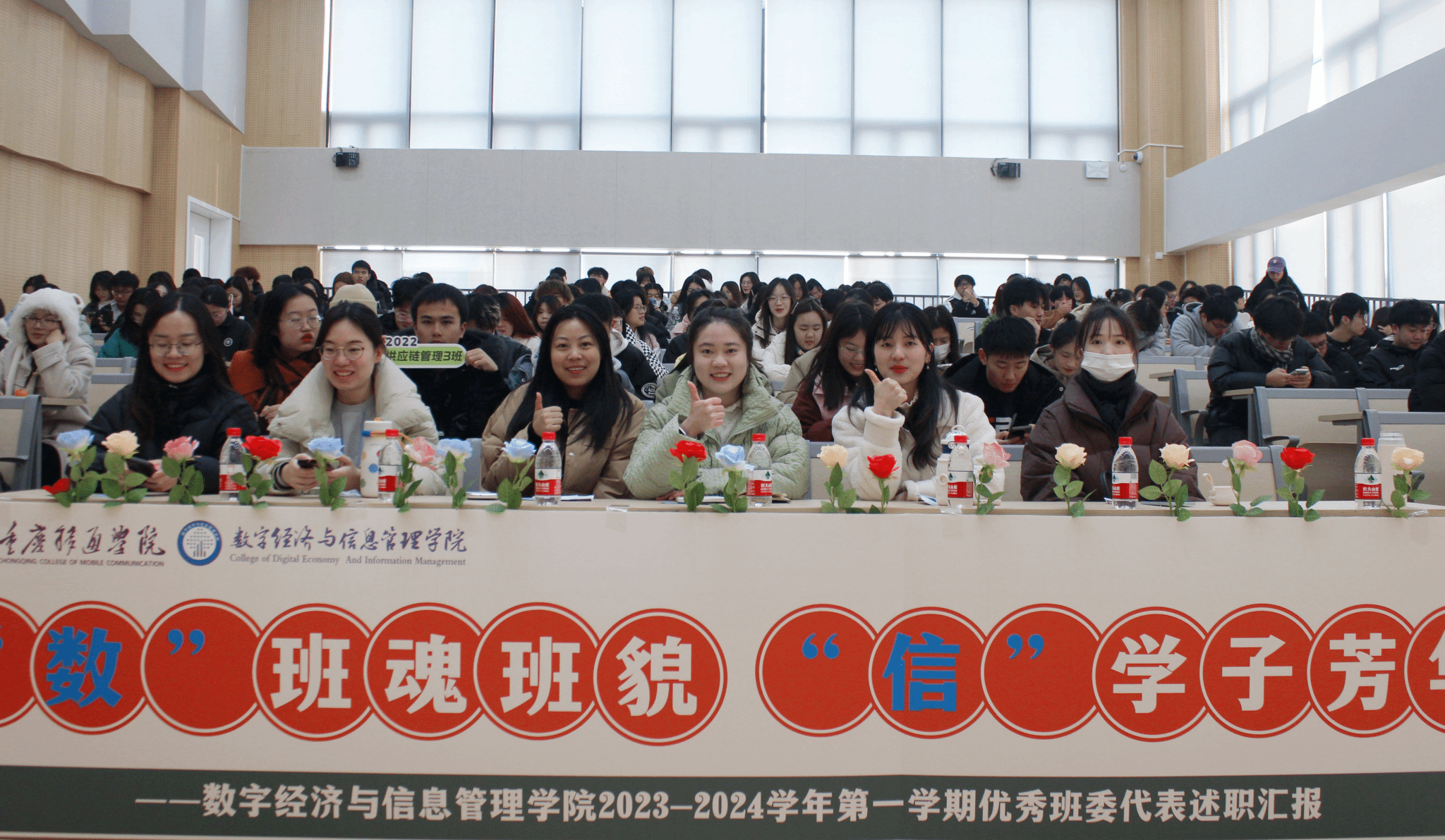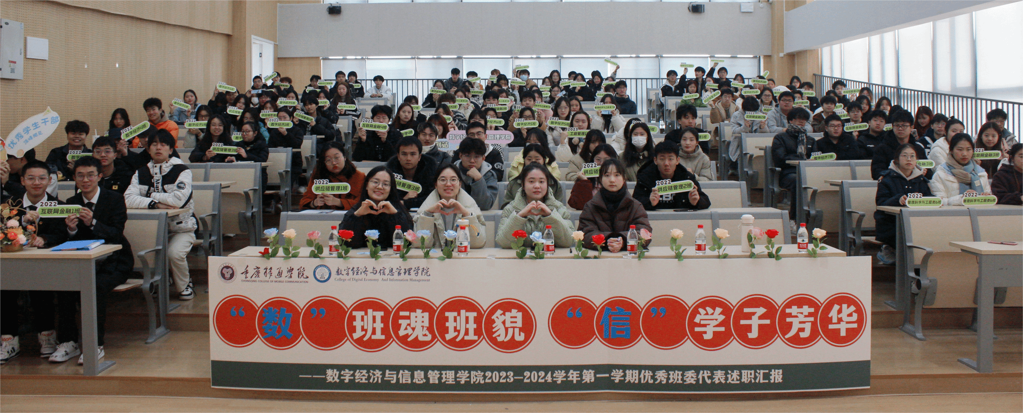 时光荏苒,岁月如梭。为了更好地促进班团建设和营造良好的班级氛围,我院于12月27日11:30在玉堂书院阶梯教室开展了2023-2024学年第一届“数”班魂班貌,“信”学子芳华班委代表汇报大会,引导各班班委通过此次班委代表汇报大会向优秀班级团体学习并帮助同学们提升学习的积极性、主动性和创造性,开创我校学风建设新局面,实现立德树人的育人目标。此次会议由2022级互联网金融2班左原源同学主持,学工办主任任超群老师、团总支书记潘锐老师、辅导员张静老师、周静老师、田园园老师、杨必菊老师和2022级、2023级骨干班委们共同参会。