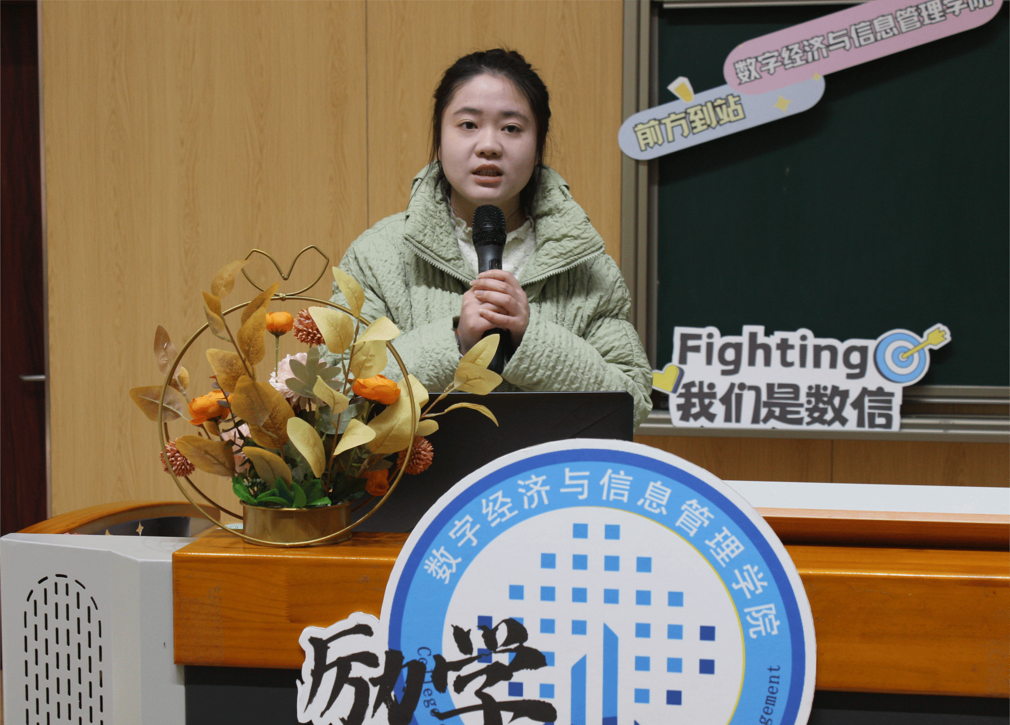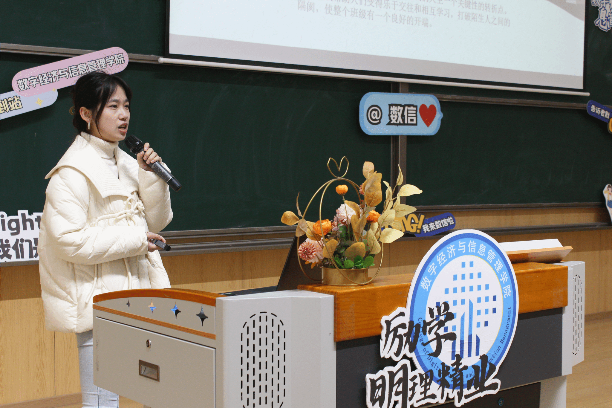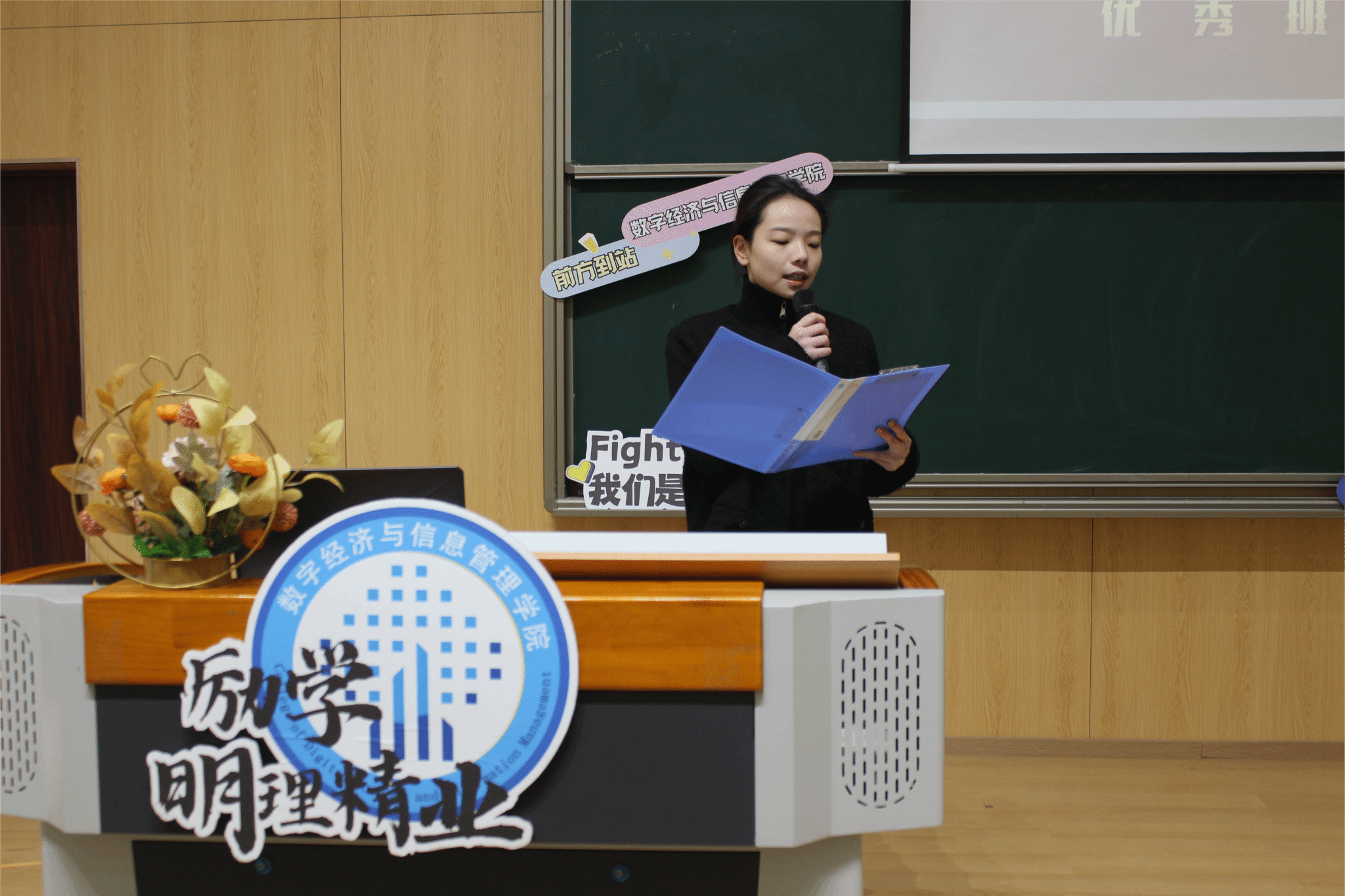 时光荏苒,岁月如梭。为了更好地促进班团建设和营造良好的班级氛围,我院于12月27日11:30在玉堂书院阶梯教室开展了2023-2024学年第一届“数”班魂班貌,“信”学子芳华班委代表汇报大会,引导各班班委通过此次班委代表汇报大会向优秀班级团体学习并帮助同学们提升学习的积极性、主动性和创造性,开创我校学风建设新局面,实现立德树人的育人目标。此次会议由2022级互联网金融2班左原源同学主持,学工办主任任超群老师、团总支书记潘锐老师、辅导员张静老师、周静老师、田园园老师、杨必菊老师和2022级、2023级骨干班委们共同参会。