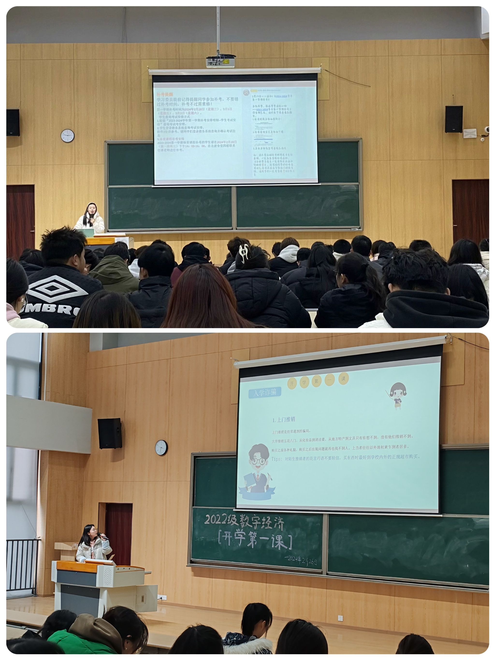 为了营造良好的学习氛围、加强校风校纪思想建设、增强学生安全意识,提高学生自我防范能力,以及让同学们能够更好地适应新学期的生活,更好地组织和安排新学期的各项工作,数字经济与信息管理学院綦江校区全体辅导员于2024年2月24-26日,相继召开了开学第一课。