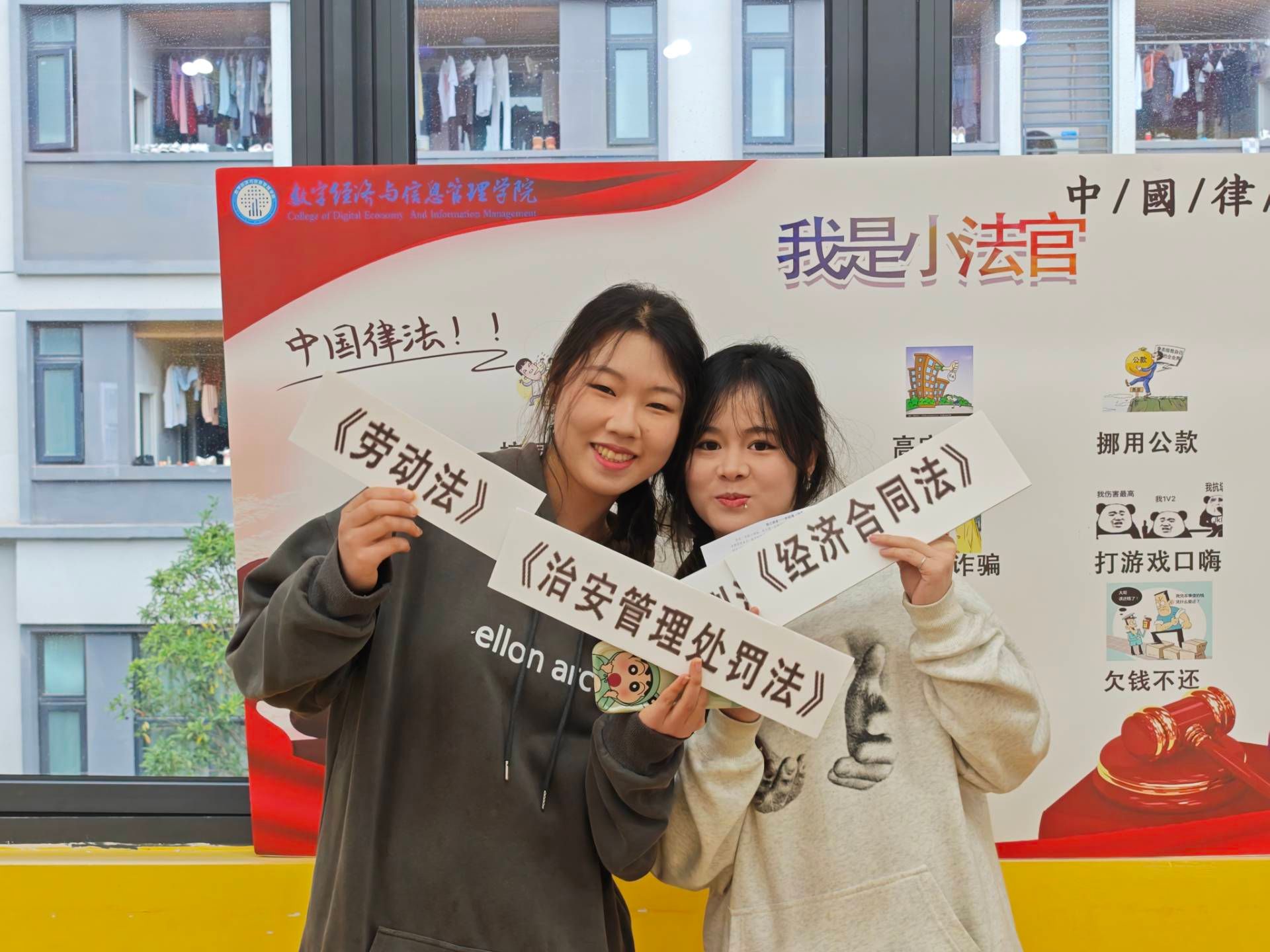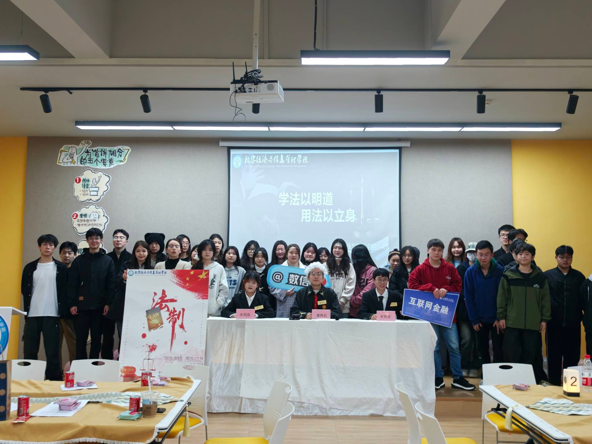 “法者,治之端也。”法规制度带有根本性、全局性、稳定性、长期性,与大学生的生活息息相关。为响应党加强法制建设的号召,活跃校园文化氛围,激发同学们学习法律知识的热情,增强同学们尊法、学法、守法、用法意识,提高法治思维能力,增强法治观念,尊崇和遵守宪法法律,做到想问题、作决策、办事情在法治之下、而不是法治之外、更不是法治之上。数字经济与信息管理学院2022级互联网金融1-4班于3月18日16:30-18:30在语者演讲培训室和很正式研讨室开展了以“学法以明道,用法以立身”为主题的年级会活动。
