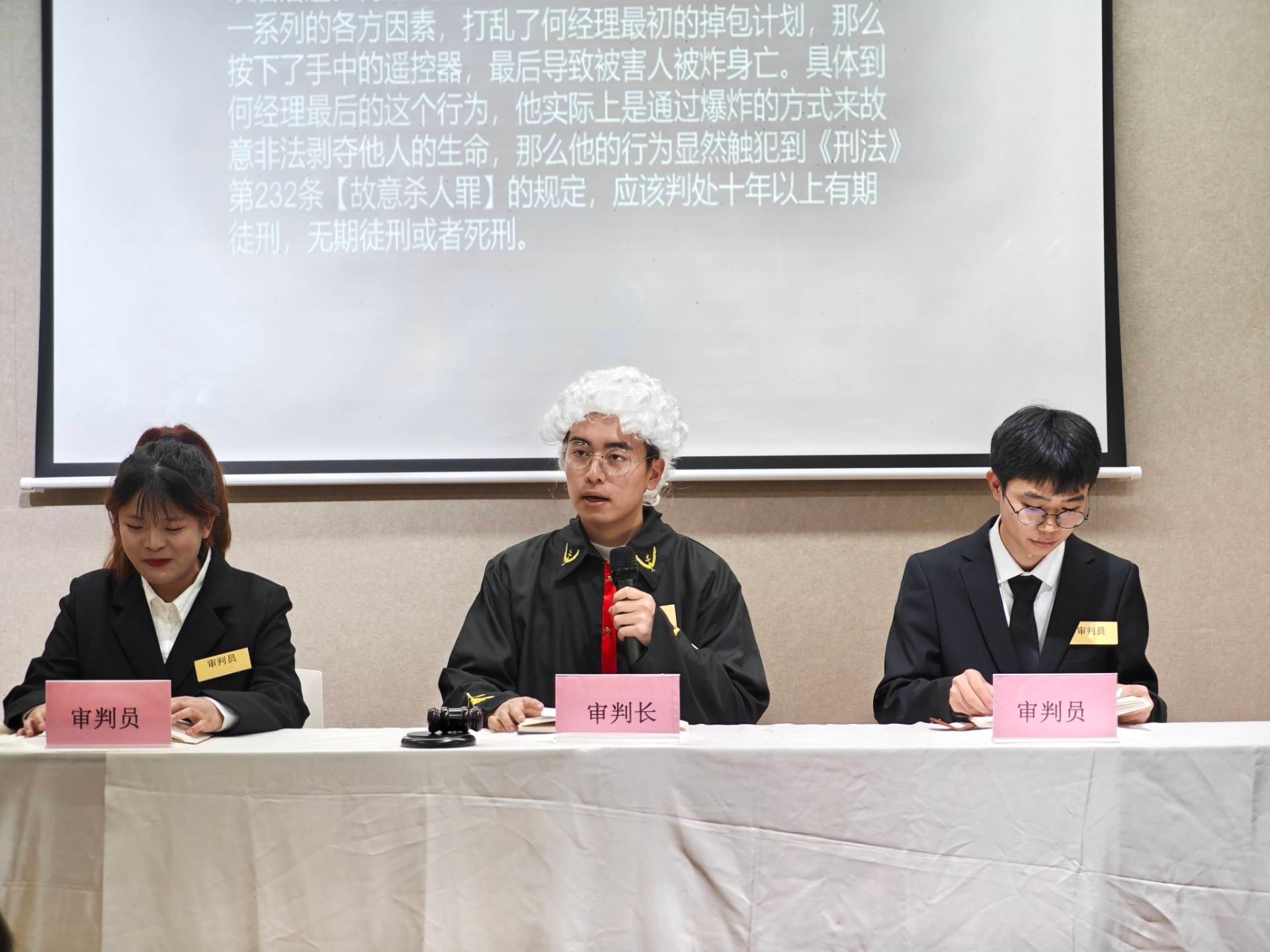 推理环节结束后,审判长和两位审判员们向大家解释了本次案件涉及的相关法律和话题,学工办主任任超群也点评到,“公里之下,正义不朽”,我们要有坚定的法律信仰,成为尊法、学法、守法、用法的好公民。