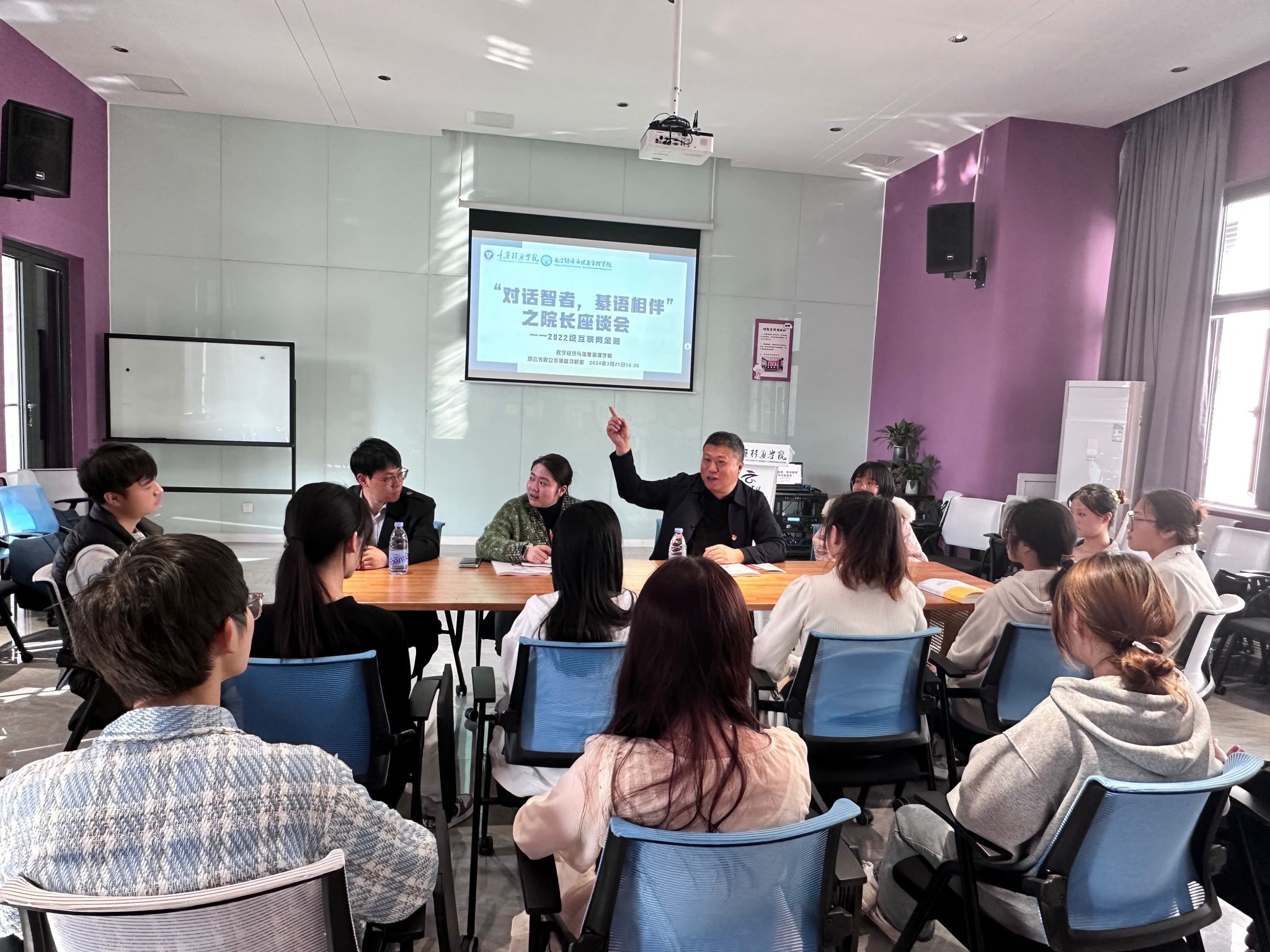 在潘院长的鼓励下,各学生代表踊跃发言,围绕初入实习的工作建议、考研规划、学业困惑等方面提出了自己的疑问和想法。潘院长、任主任以及参会的各位老师认真倾听同学们的诉求,对每位同学的提问都进行了全面、详细、耐心的回答。此外潘院长结合实际对同学提出的考研考公提出宝贵建议:“在大二这个阶段就要根据相关专业进行准备,明确自身目标,稳健护前行,要懂得珍惜机会,提升自我价值。”
