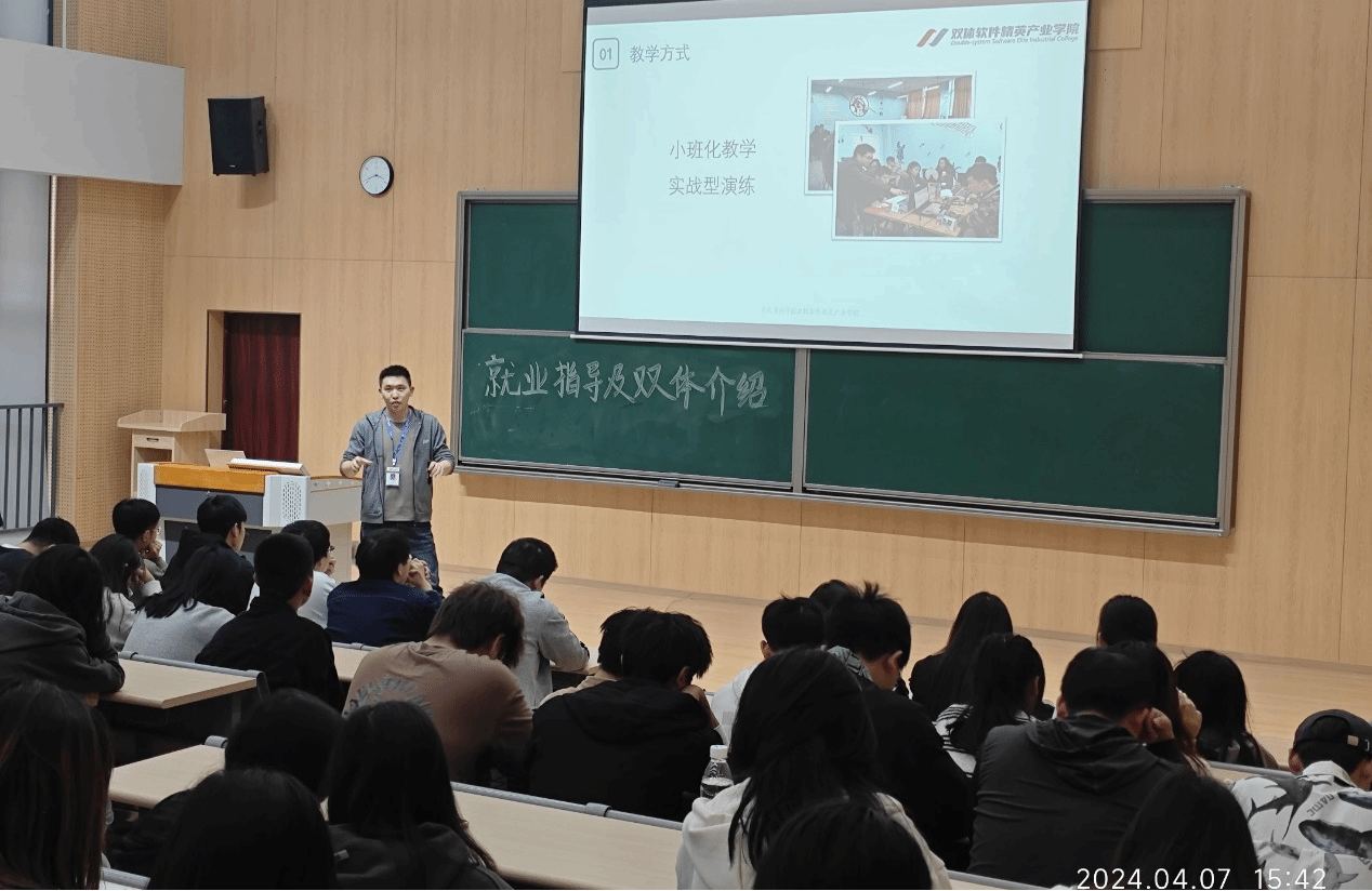 风起于青萍之末,浪成于微澜之间。为了提升我院学子的就业素质与职业规划能力,我院于2024年4月7日15:00在玉棠阶梯教室举办了主题为“就业指导及双体介绍”的讲座,本次活动的嘉宾为资深中级经济师、国家高级家庭教育指导师唐蜜老师,拥有丰富游戏开发和云计算经验的胡权老师,特邀的就业创业导师吴世江老师,我院就创板块指导老师陈燕华,2022级、2023级各专业140名学生代表参加活动。