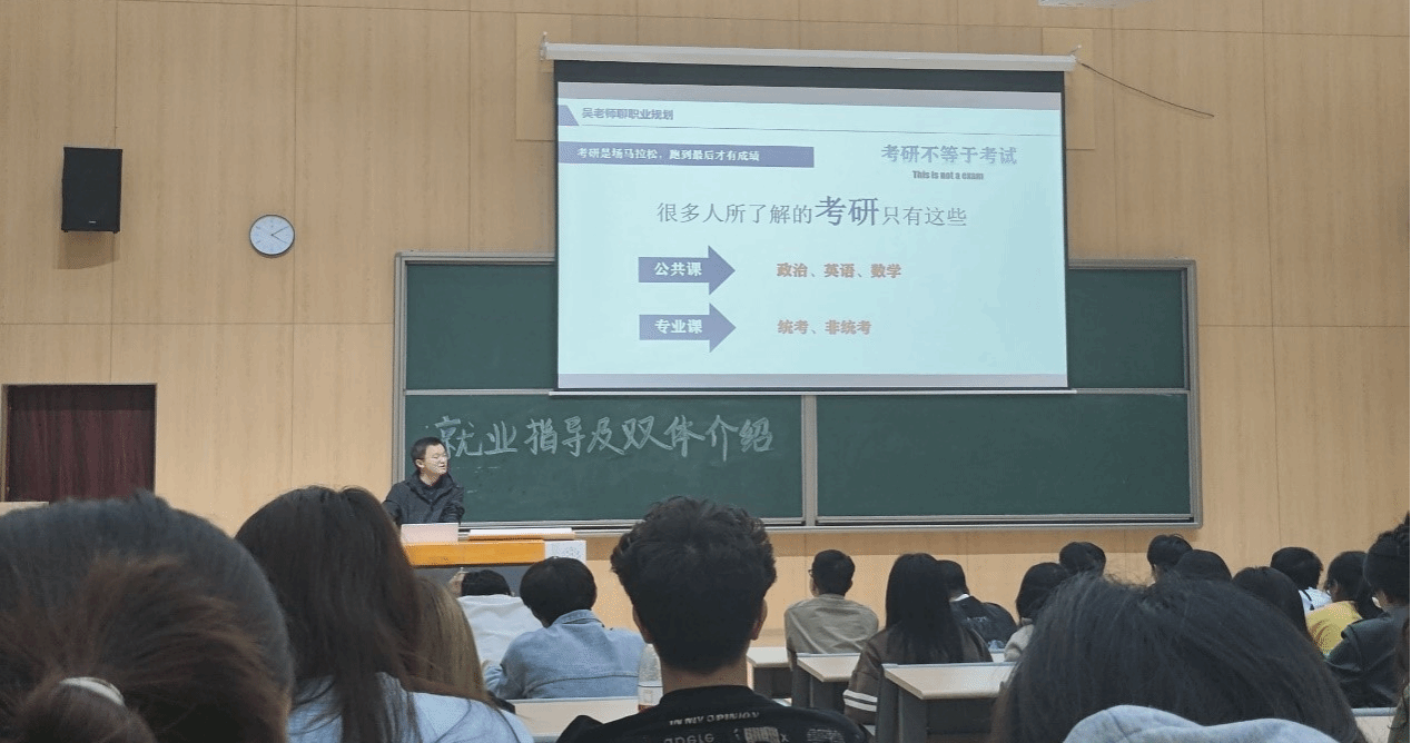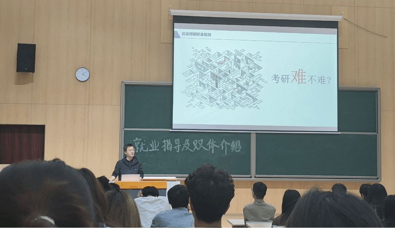 最后,吴世江老师以互动交流的形式与同学们共同探讨就业话题,他总结了五个就业去向,重点分析了考研方向策略,其中他特别强调,考研虽复杂但并非难事,关键在于制定明确的战略和战术规划,然后再结合上海大学本科生就业分析及2020年大学生就业率报告等实例深入剖析了就业趋势,提醒同学们要增强紧迫意识来面对严峻的就业形势和持续上升的就业压力。