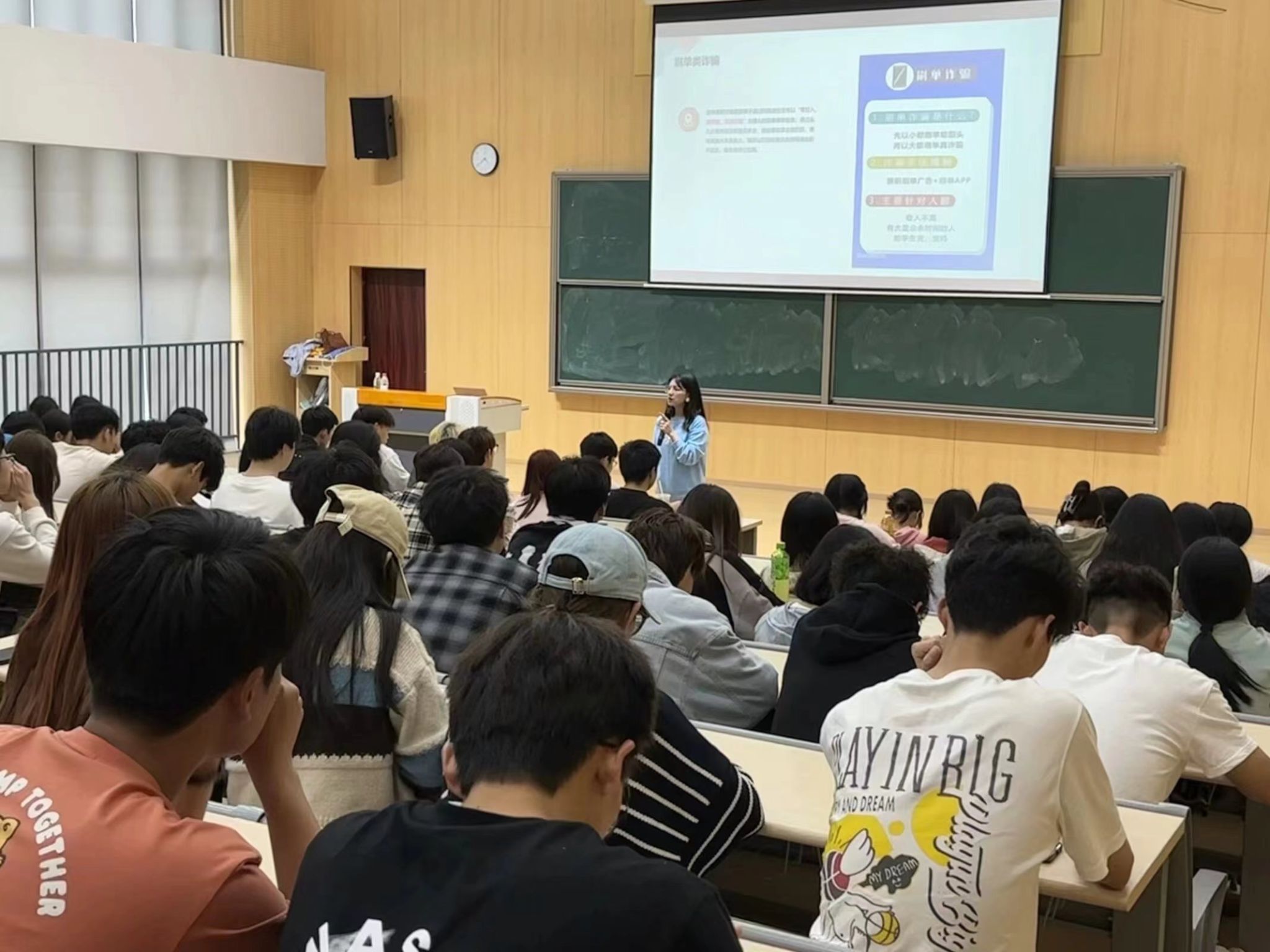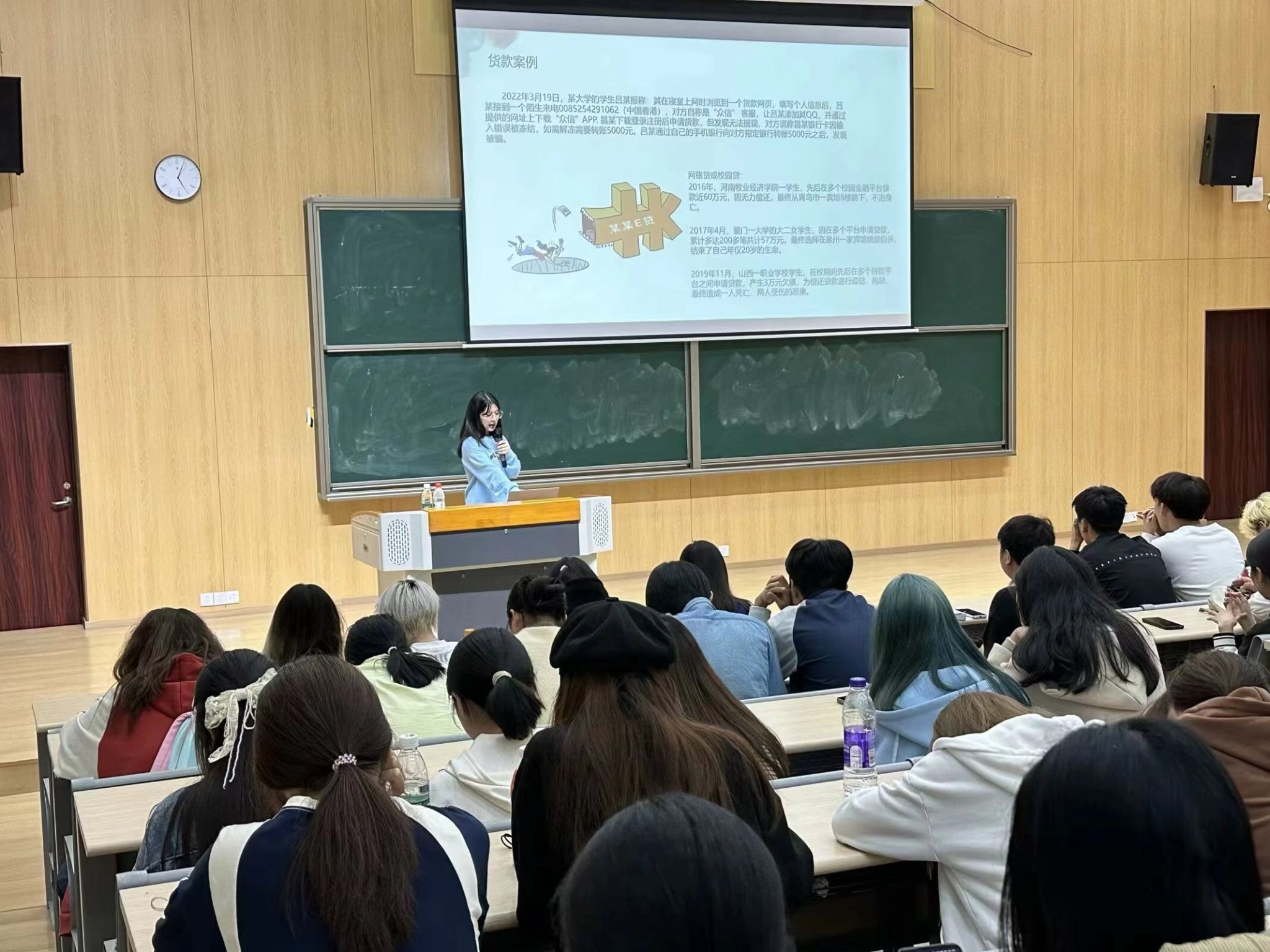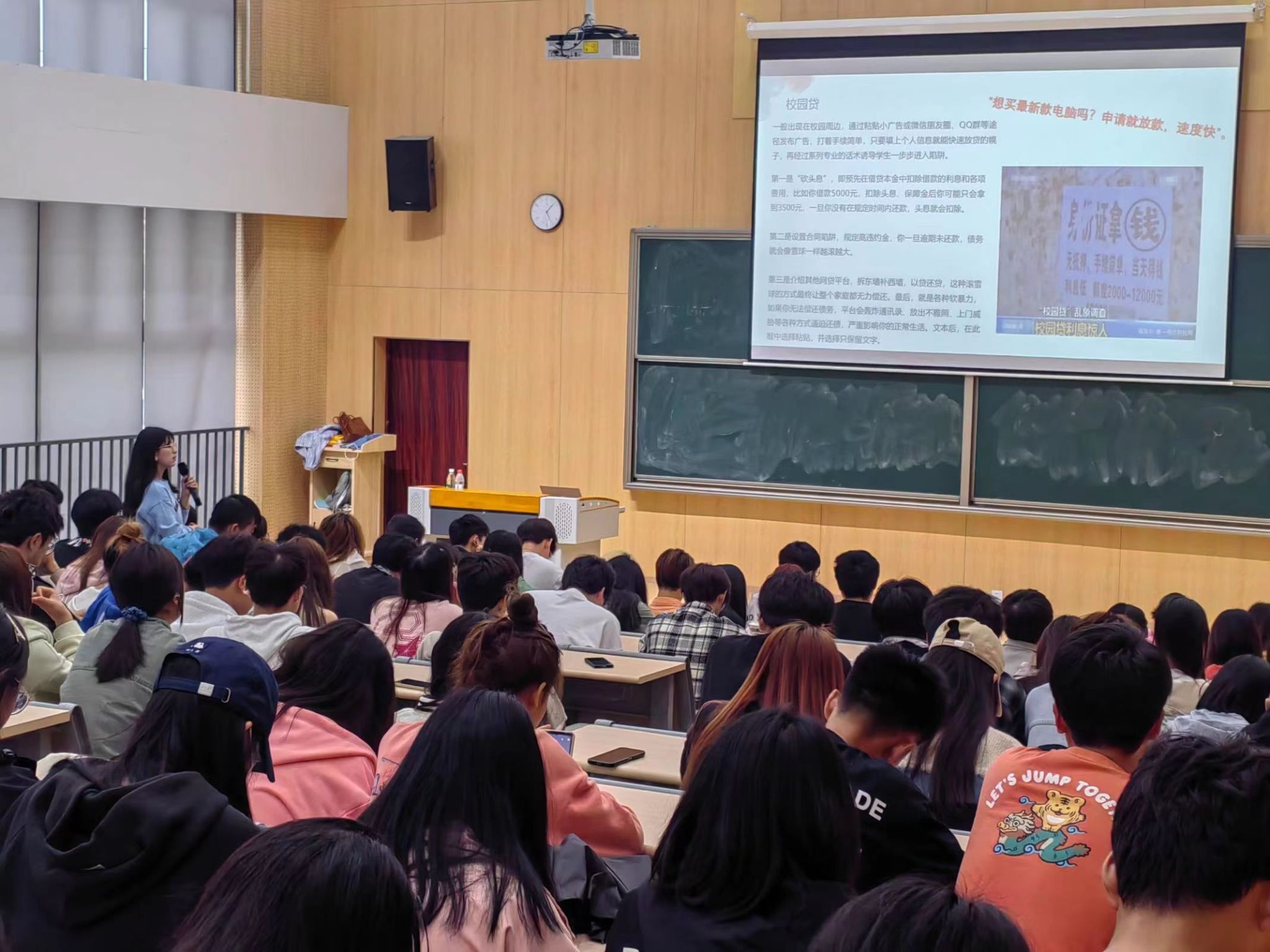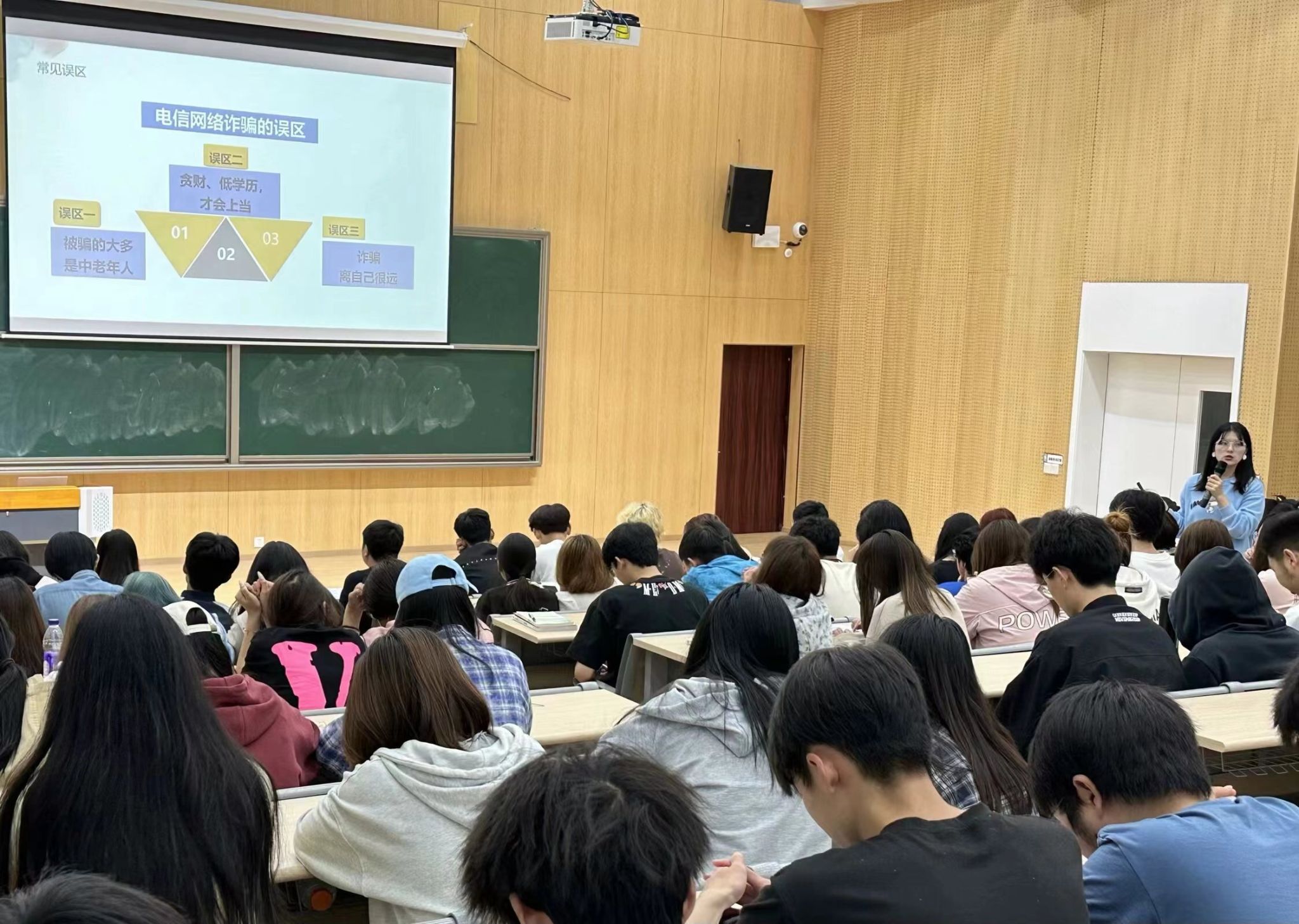 然后,辅导员张静老师向同学们介绍了四大电信诈骗常见类型——刷单类诈骗、贷款类诈骗、杀猪盘和冒充电商物流类诈骗。张老师先是向同学们介绍了每个电信诈骗类型的明确定义——刷单类诈骗是指骗子通过网络途径发布以“零投入、高回报、日清日结”为噱头的刷单兼职信息,通过头几次刷单后立即返还本金、佣金骗取事主信任后,诱导其加大本金投入,随后以打包任务未完成等理由拒不返款,最终将事主拉黑;贷款类诈骗是指以非法占有为目的,编造引进资金、项目等虚假理由、使用虚假的经济合同、使用虚假的证明文件、使用虚假的产权证明作担保、超出抵押物价值重复担保或者以其他方法,诈骗银行或者其他金融机构的贷款、数额较大的行为;杀猪盘是指诈骗分子利用网络交友,诱导受害人投资赌博的电信诈骗方式。诈骗分子准备好人设、交友套路等“猪饲料”,将社交平台称为“猪圈”,在其中寻找被他们称为“猪”的诈骗对象;冒充电商物流客服诈骗是指骗子通过非法手段获取受害人的购物或物流信息;冒充电商客服或快递客服,编造各种借口实施诈骗。