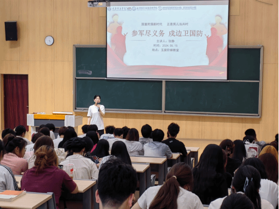 为深入贯彻落实习近平强军思想,进一步落实国家相关征兵工作要求,帮助大学生全面了解征兵政策,激发应征入伍热情,积极鼓励和引导高素质人才到军营建功立业,推动国防和军队现代化建设,确保我校征兵任务的圆满完成,2024年5月15日16:10于玉棠书院阶梯教室,数字经济与信息管理学院互联网金融1-3班和供应链管理1-3班开展“征兵宣讲会”。本次会议由辅导员张静老师主持演讲,共213人参与此次会议。
