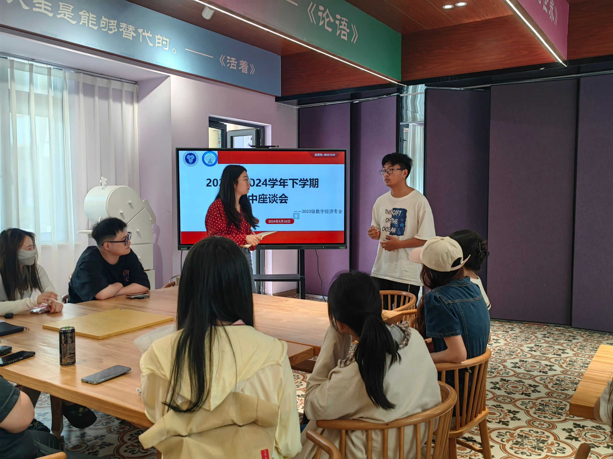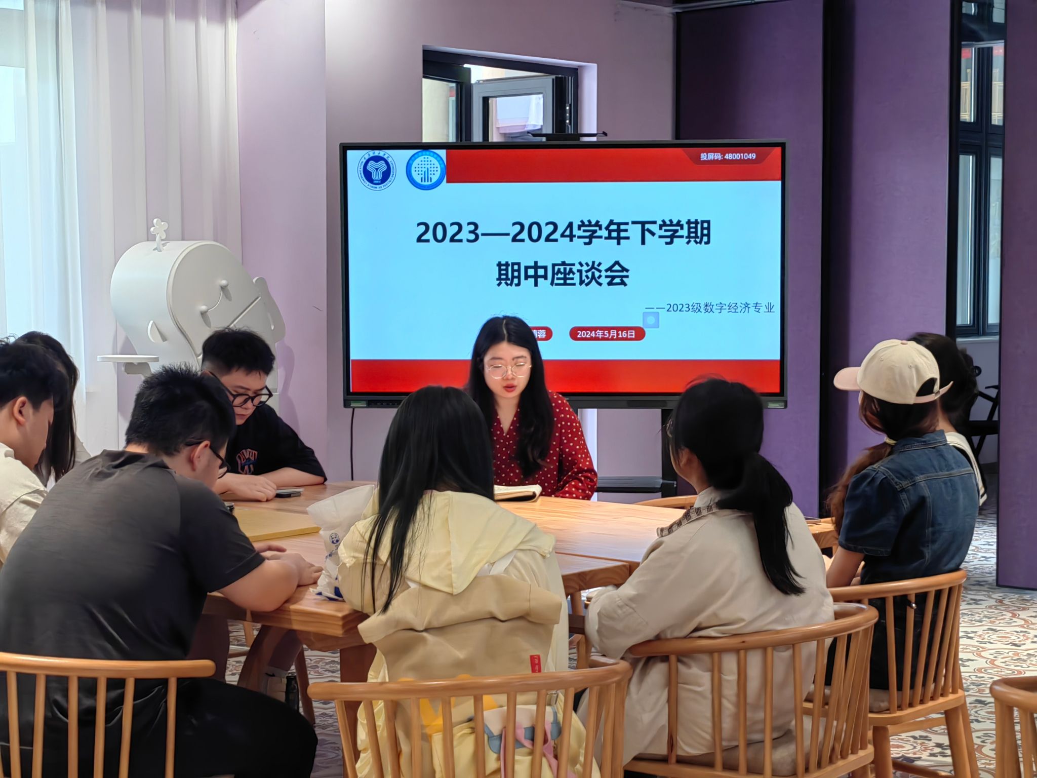 初夏微风拂面来,万物勃勃生机显。为充分了解同学们在学业、生活等方面的需求和困惑,加强班级学风建设,促进各个班级间的交流与学习,充分调动学生干部在班级工作中的积极性和主动性,发挥其管理作用和模范带头作用,助力学生全面成长,营造良好的工作作风和学风。2023级数字经济专业辅导员吴倩蓉老师于5月16日16:00在观云书院·华文书吧开展2023-2024学年第二学期期中座谈会,本次会议由2023级数字经济专业全体学生干部参加。