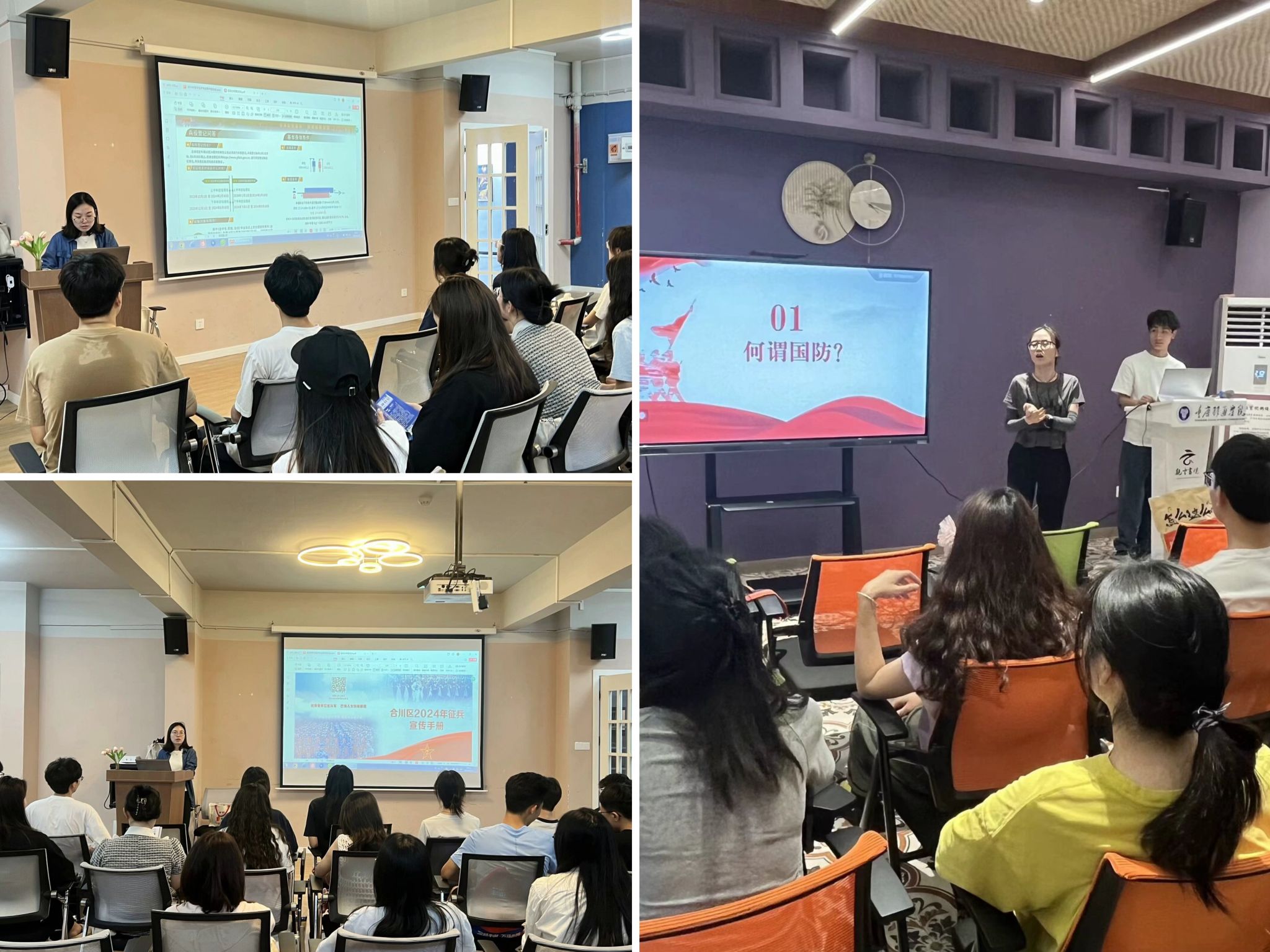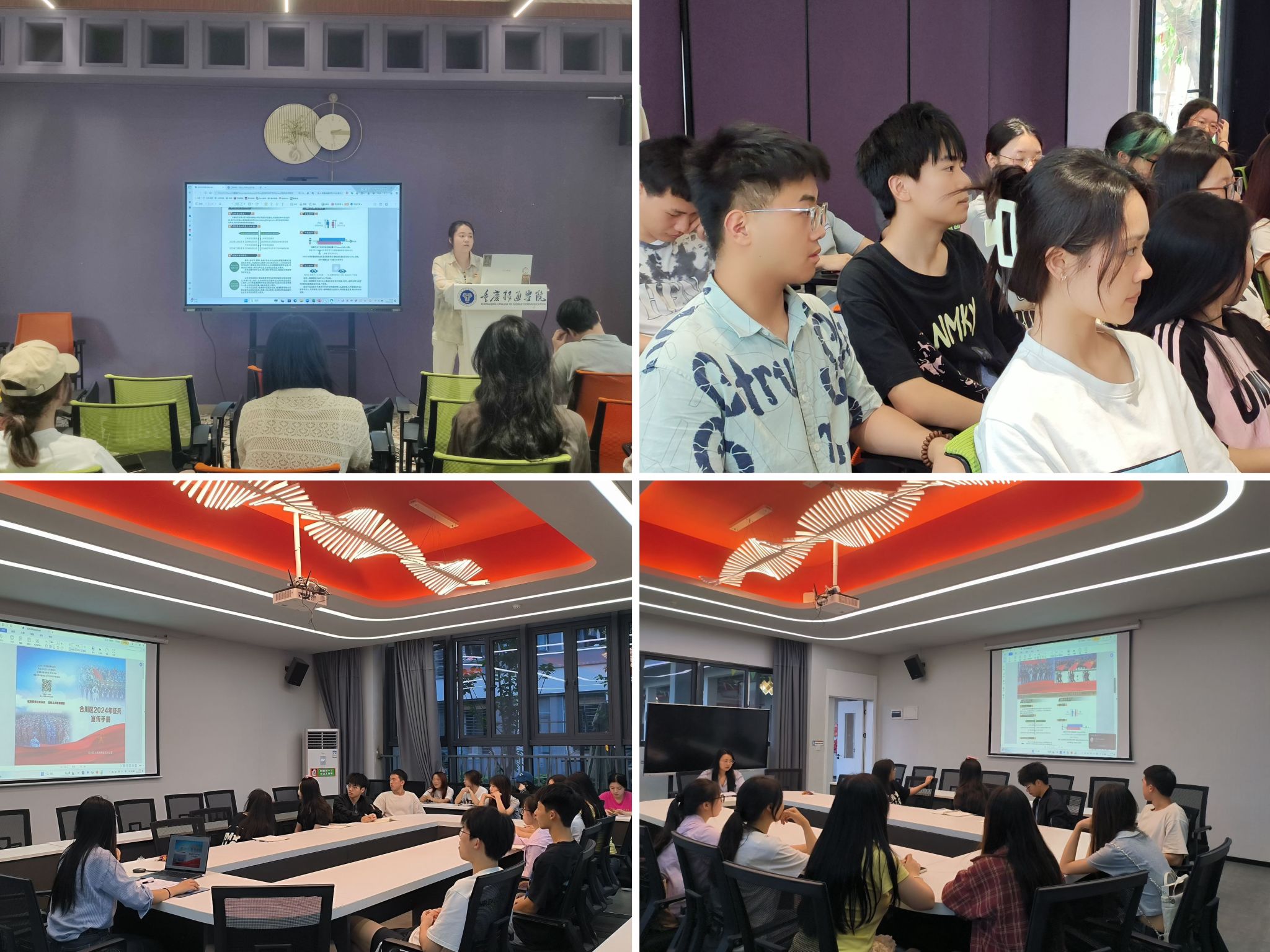 辅导员老师们从国防基础知识、入伍优待政策、报名条件和报名流程等方面进行了详细解读,让学生们对征兵政策有了更加全面、深入的了解。同时,我院还通过播放宣传片、设立咨询台等多种方式,营造浓厚的征兵氛围。