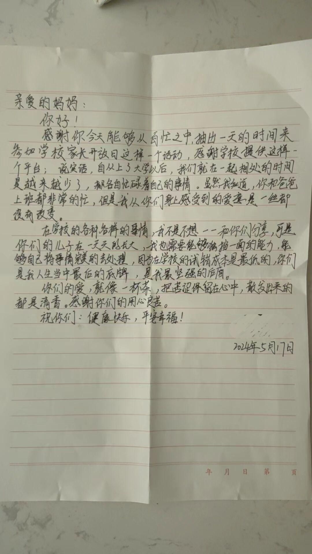 一曲歌毕,迎来了《一封家书》环节。各位同学分别上台,分享了自己写给父母的一封家书。同学们的内心世界与真挚情感埋藏在一个个文字中,向自己的父母传递了无与伦比的爱和温暖。现场的父母无一不落泪,但脸上依旧挂着笑容,笑容是对孩子成长的欣慰,眼泪是对孩子成长的感动。现场的老师们也被父母与孩子之间的情感所打动,纷纷红了眼眶。