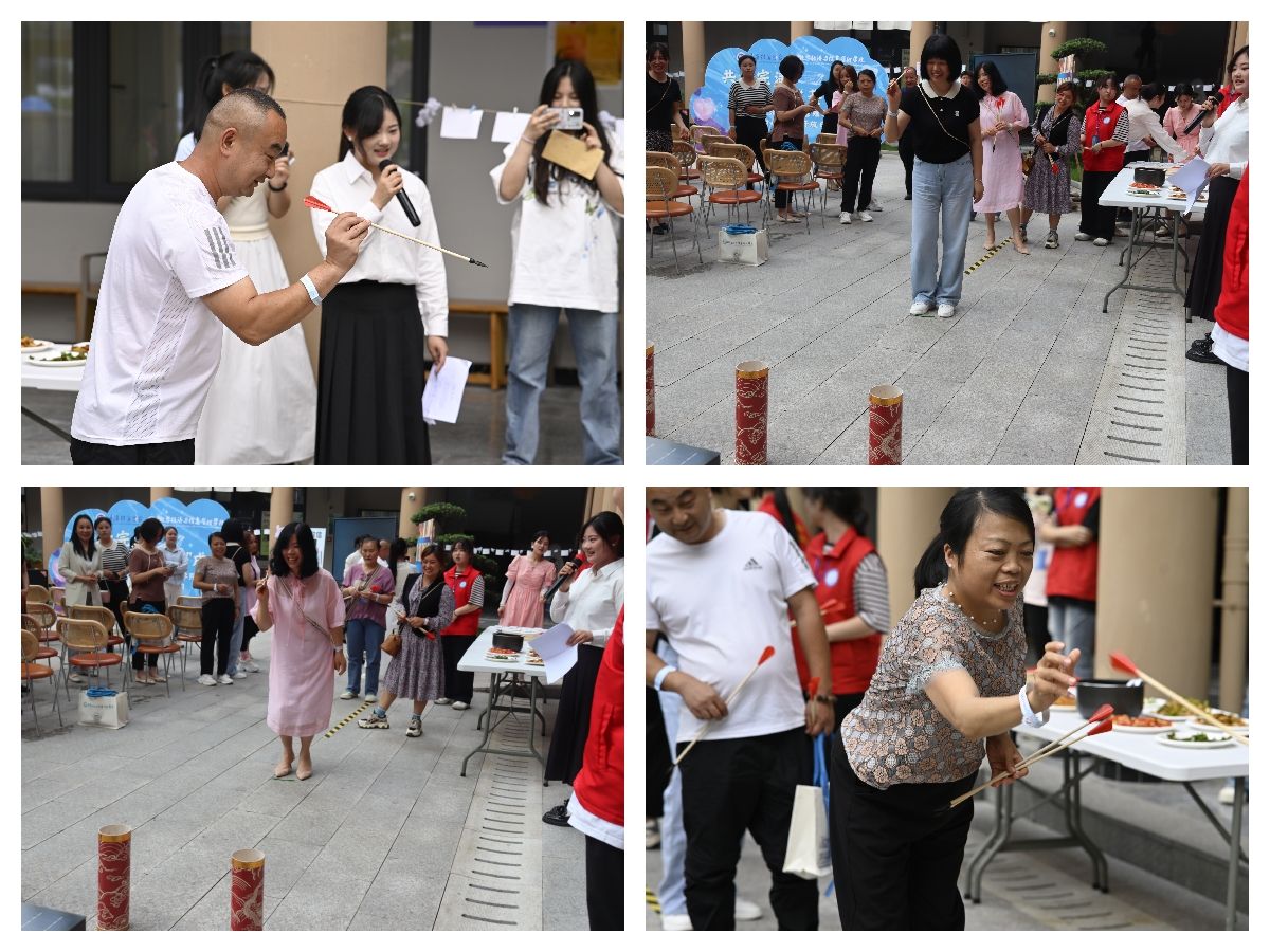 参与一次完满活动。移步室外,家长们进行了一场激烈的投壶游戏,成功投中的家长可以优先品尝一道菜品,并选择这道菜品是否为自己的孩子所做,成功猜中的家长将获得一张和孩子、辅导员合照的拍立得照片一张。