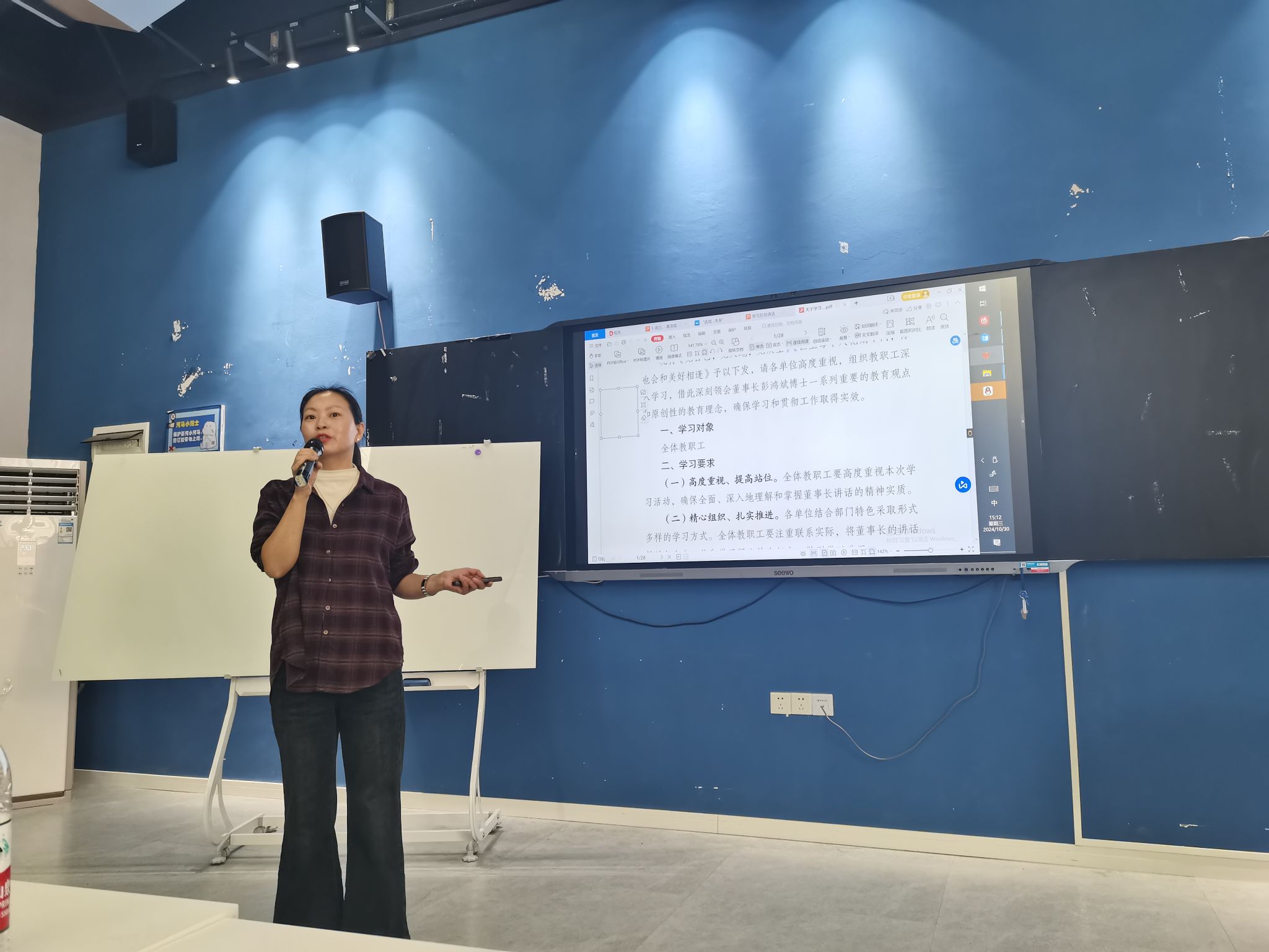 会议伊始,刘院长首先带领全体教师学习了彭鸿斌董事长的两篇文章——《见自己,见天地,见众生》和《世上每个人花期不同,你也会和美好相逢》,强调完满人格教育的重要性,并着重讨论了如何改善学生和家长的心理状态。随后,各教研室教师代表分别结合自身教学经验,分享了如何在实际教学中贯彻彭董事长的教育观点,特别是如何关注学生心理健康以及如何利用学校资源促进学生全面发展。
