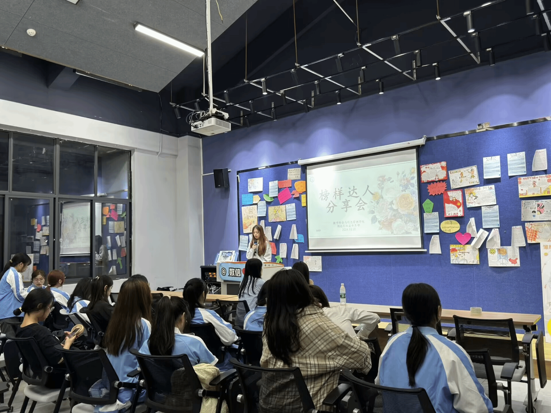 活动现场气氛热烈非凡。此次,我们有幸邀请到了杰出的榜样达人——汤郁学姐。汤郁学姐极为热心地向同学们分享了她在各个领域的奋斗历程与成功经验,其中包括在社团活动中的不断自我突破,以及在艺术创作道路上的积极参与。这些宝贵的经历为同学们提供了极佳的参考,让同学们逐渐找到了方向,确立了属于自己的目标。
