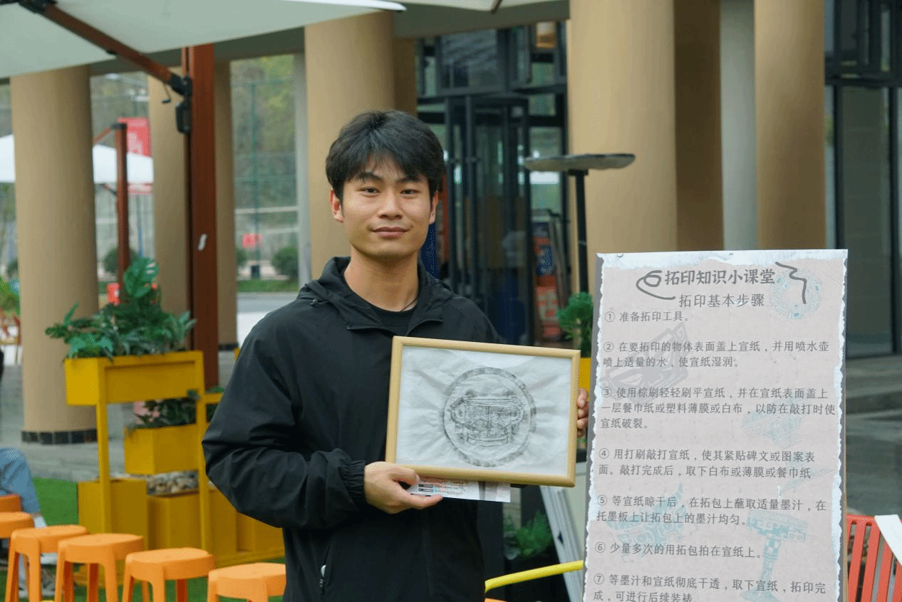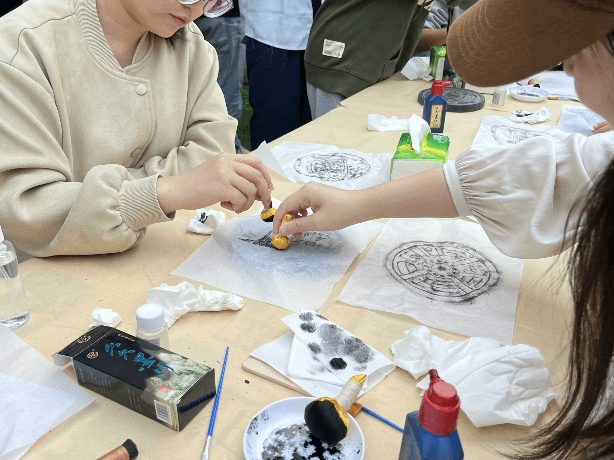 感受过文物制作的不易之后,同学们又通过非遗拓印这一技艺触摸到历史的旧痕,聆听到历史的回响,感受到文化的深沉呼吸。同学们在试错的过程中不断吸取经验,在经历一次又一次的失败之后掌握了制作出完好的文物拓印技巧,精准掌握好墨汁的用量,手法的技艺,在拓片上拓印出了一份又一份的精美作品。非遗拓印让古老的文物跃然纸上,当同学们的指尖轻轻滑过拓印作品时,仿佛穿越回了那个遥远的年代,感受到那份古朴与纯真。让同学们在欣赏艺术之美的同时,也能深刻感受到中华民族深厚的文化底蕴和精神内涵,激发出同学们对历史的敬畏和对文化文物遗产保护的重视。