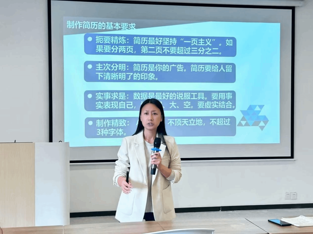 10月30日14:00-15:00童学容老师以简历制作为主题为同学们进行了详细的讲解。优秀简历是求职敲门砖,学会制作至关重要。童老师先讲基本要求,强调简历要扼要精炼、主次分明、实事求是、制作精致,满足这些才能获求职公司关注。接着讲解基本架构,明确基本信息、求职意向、社会实践、校园实践、教育背景是简历不可或缺部分。最后细分各板块深入讲解。通过童老师此次细致讲解,同学们简历质量大幅提升,求职信心也得以有力增强,为同学们日后求职打下了良好基础,让大家能更从容地应对求职环节中的简历投递等事宜。