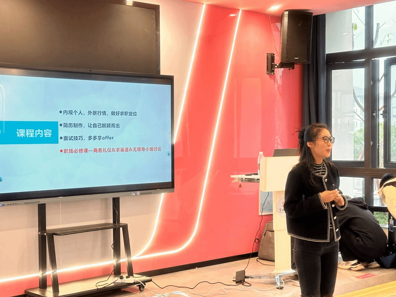11月1日14:30-16:30张林老师以“面试技巧”为主题展开了深入的讲解。张林老师从面试前、面试中途与面试后同学们应该怎样做三个方面出发,详细解答了同学们如何能够提高自己的面试竞争力。活动伊始,张老师强调了面试前的准备工作的重要性,从了解公司、了解职位等多个角度具体解析了先前准备的作用。接着,张老师又针对面试过程中的不同阶段分别阐释技巧与忌讳,并精心运用了自己拍摄的面试场景模拟视频,带领同学深刻领悟所分享的技巧、学习如何灵活的运用技巧来提升面试表现。最后张老师提出面试后应该进行复盘,特别提出“面试就是一场高质量的对话。”引导同学们以积极心态对待面试,注意复盘步骤。张老师的讲解不仅提供了宝贵的理论指导,更增强了同学们对未来求职面试的信心。