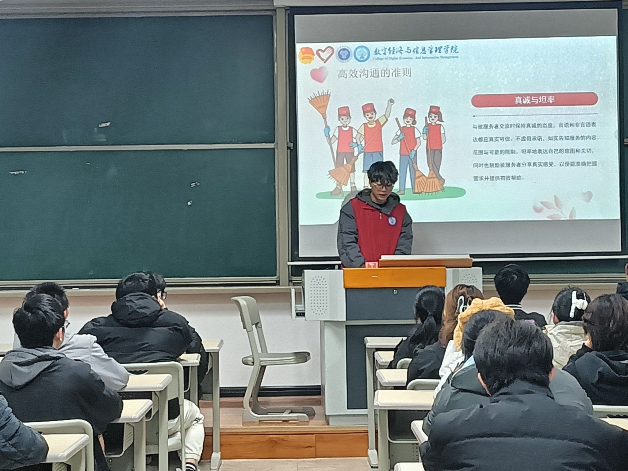 在志愿服务的旅程中,良好的沟通如同一条无形的纽带,将志愿者与服务对象相连。为了确保志愿者能够准确理解服务角色和志愿职责范围,提升在实际生活中的高效工作能力并能够更深入感受服务对象的情感波动,数字经济与信息管理学院青年志愿者协会于11月27日在仁者楼301举办了“沟通桥梁,志愿心声”花果培训第三期活动。