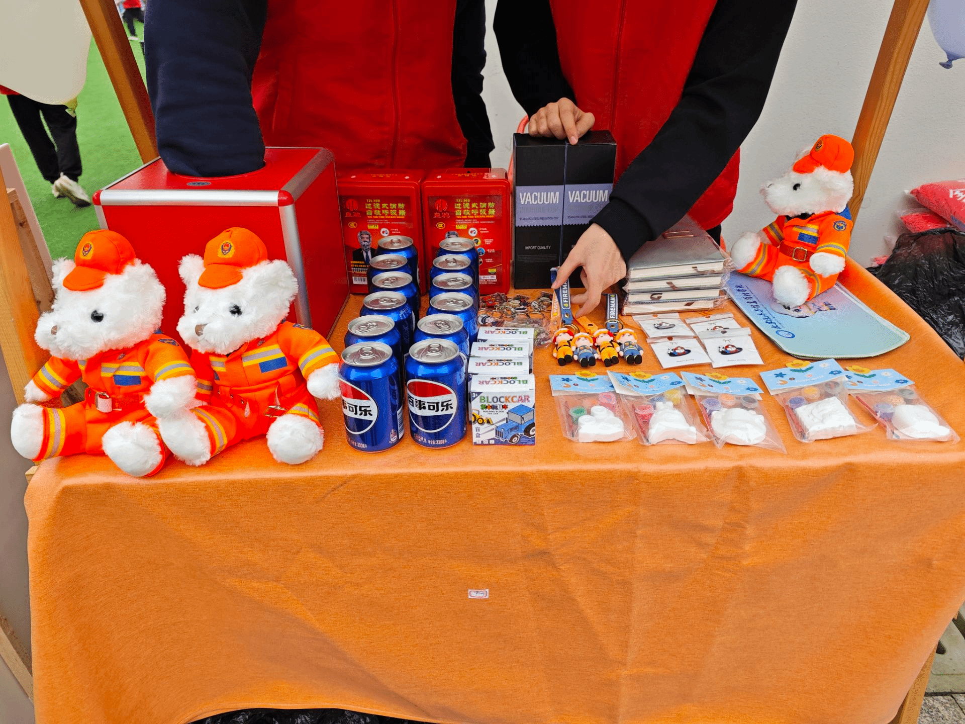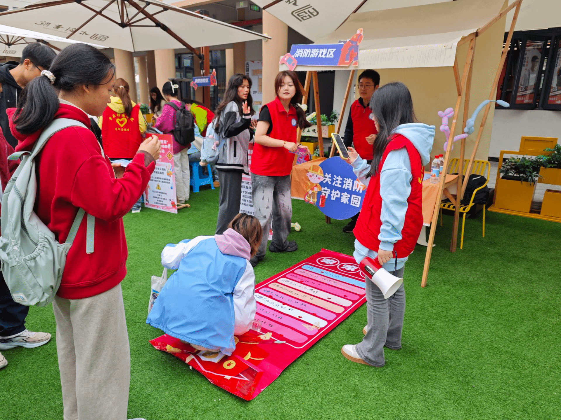 集市现场设置了多个游戏互动点位,如消防飞行棋、消防知识滚滚乐、消防气球大冒险等,将消防知识融入趣味游戏中,让师生们在轻松愉快的氛围中学习消防安全知识。每个游戏点位前都人头攒动,排着长队,参与者络绎不绝,参与氛围异常火爆。