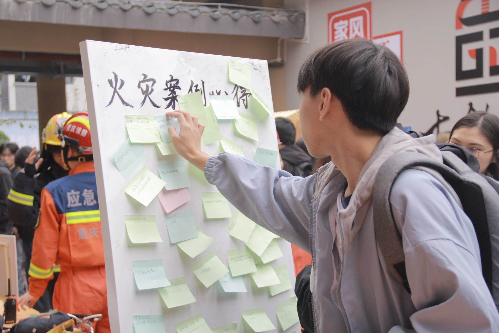 值得一提的是,活动当天,綦江区消防救援支队消防宣传员丁胜同志来到消防集市进行了现场直播,让更多的观众看到了消防集市,学习了消防知识,了解了消防文化。活动现场,她说“这个消防集市真是太好玩了,在轻松愉快的氛围中就能学到很多消防知识,让她印象最深刻的是消防飞行棋,不仅是小时候爱玩的游戏,还结合了消防知识。真是别出心裁!”保卫处处长谈胜来到活动现场并这样评价此次活动:“不一样的消防安全宣传活动,消防知识和集市路演的结合非常有趣!”