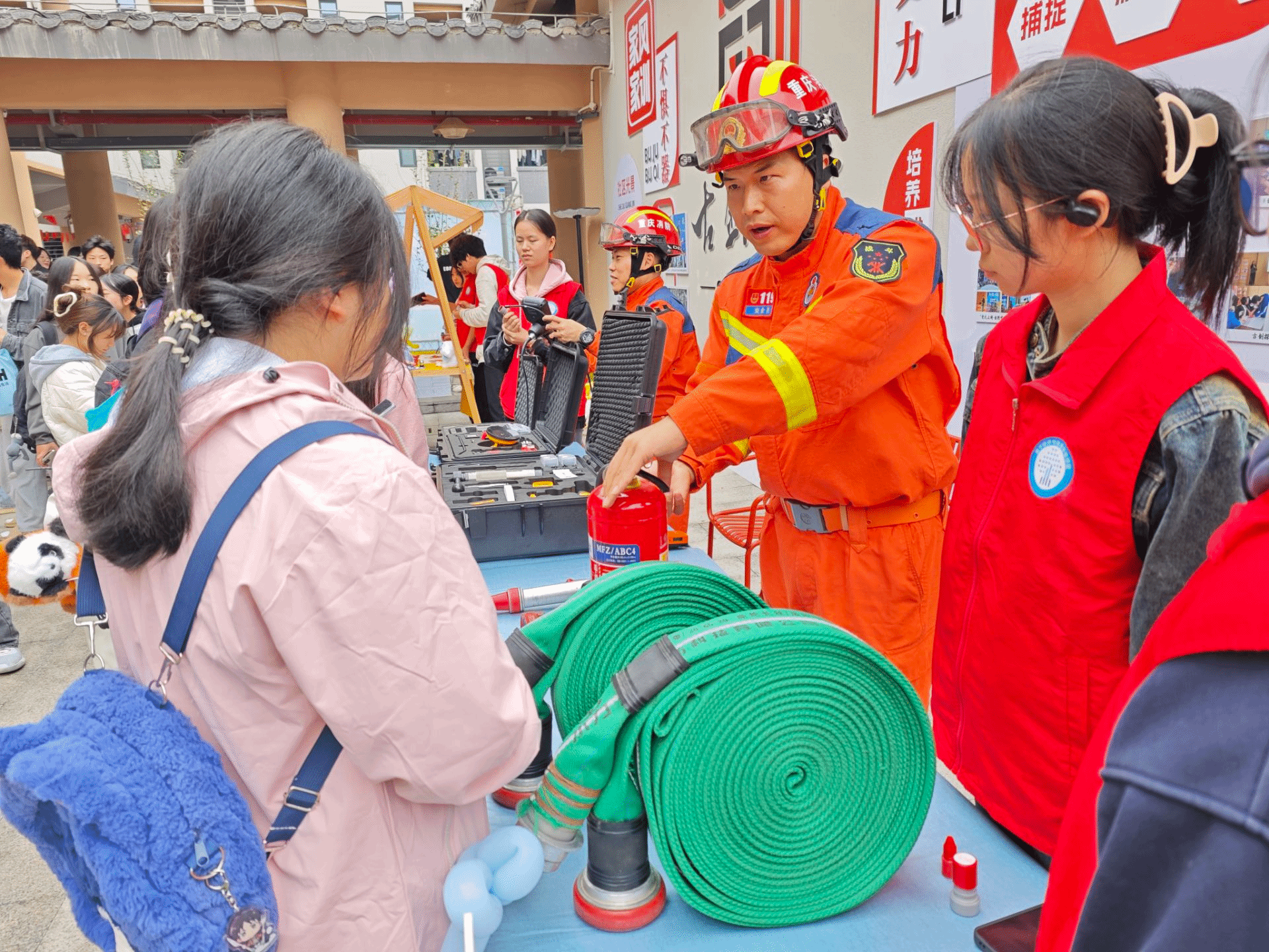 今年11月是第33个全国消防宣传月,为积极响应党中央关于加强消防教育的号召,着力提升师生防灾及突发事件应急处理能力。11月14日,由綦江区消防救援支队指导,重庆移通学院安稳办主办,重庆移通学院保卫处、数字经济与信息管理学院承办的“11.9消防主题月”——“消防集你我·蓝焰奇妙行”消防集市活动在重庆移通学院綦江校区古剑书院中庭举行。