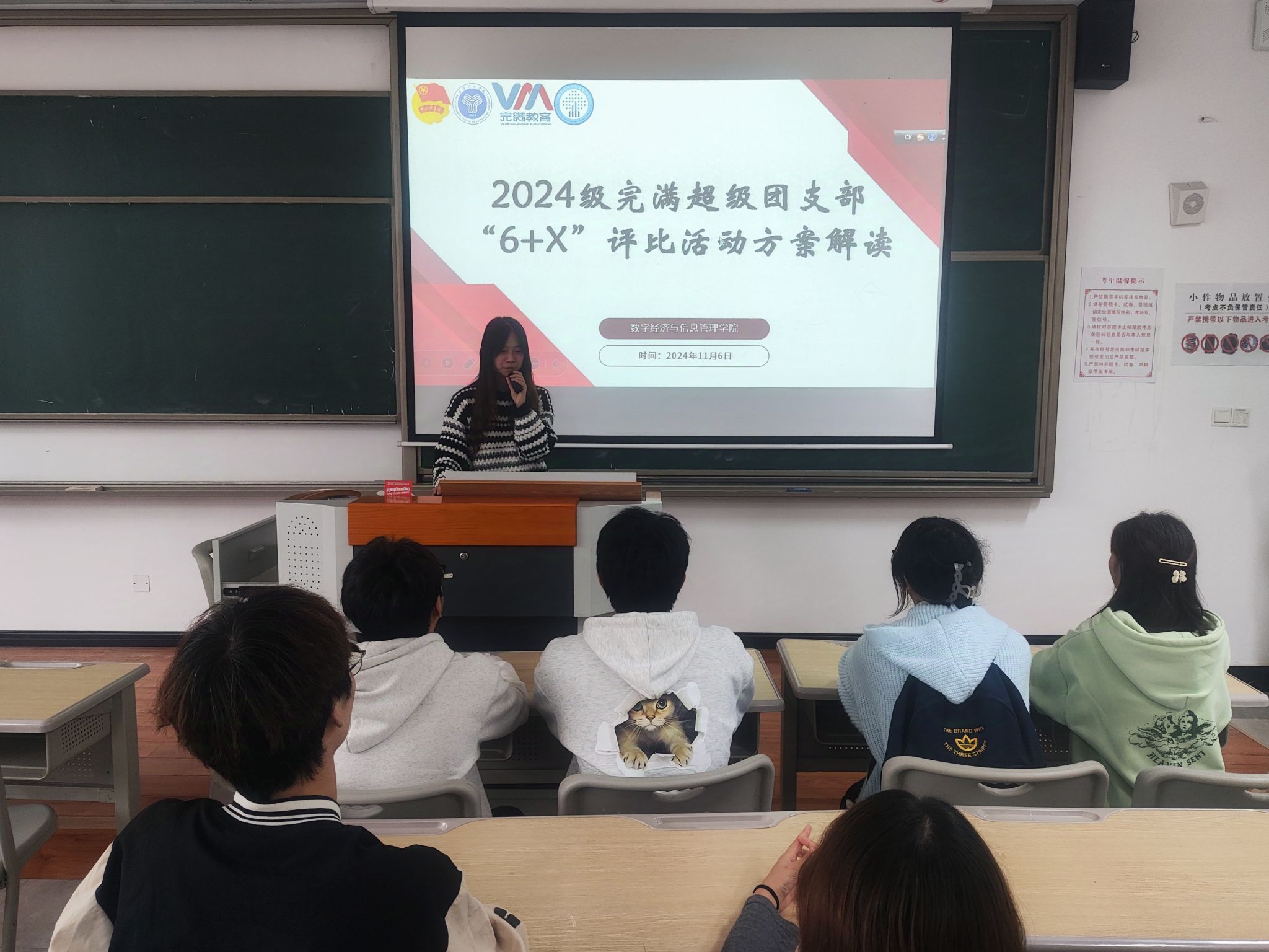 凝聚基层微光,焕发完满活力。数字经济与信息管理学院2024级完超解读会于11月6日12:30在仁者楼504热烈进行。在此次会议中各班团支部代表为建设完满超级团支部建言献策,积极将完满超级团支部的理念与我校“四位一体双院制+特色课程”育人理念完美结合。2024级各班团支部代表聚精会神,目光中透露着坚定与信心,向我们展示了他们构建完满超级团支部的决心。