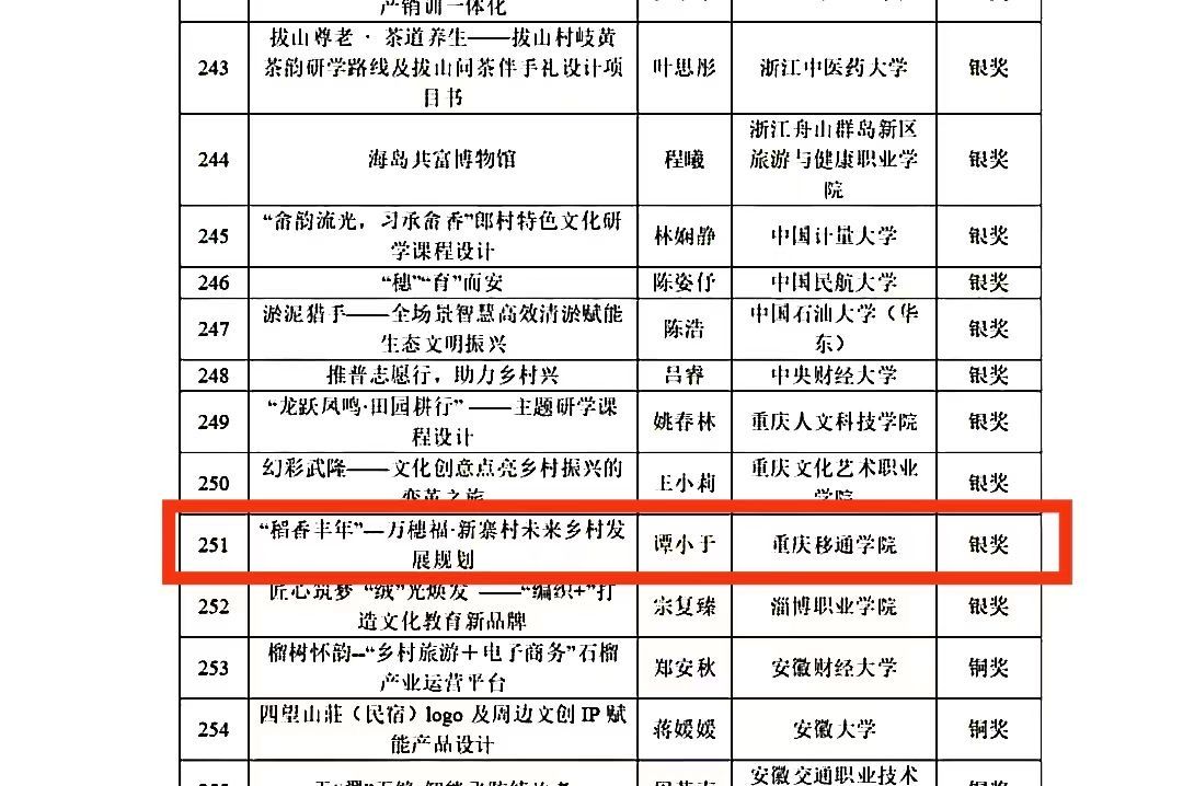 近日,我院学子在国家级及区级赛事中屡创佳绩,捷报频传!在“创青春”第四届全国大学生乡村振兴大赛中,由数字经济与信息管理学院周籽豪、罗垚,戏剧影视学院谭小于,大数据学院何海燕,信息安全学院雍凯添组成的小鱼儿队,凭借作品《“稻香丰年”——万穗福·新寨村未来乡村规划》,荣获主体赛银奖。该大赛吸引了全国550所高校、3920支团队参与,竞争激烈。
