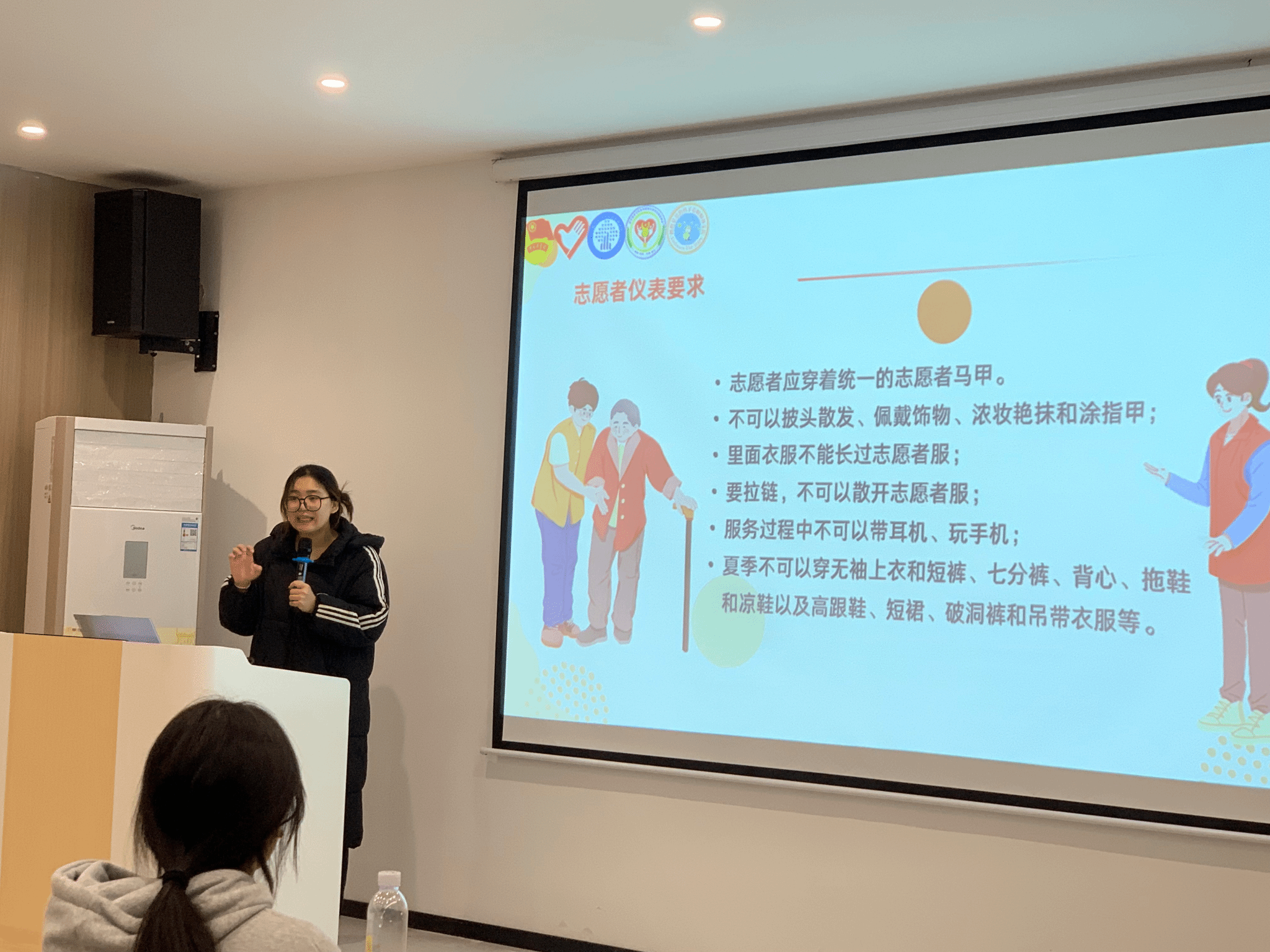 在培训过程中,队长肖蓉深入解读了志愿者应秉持的尊重、关爱、平等、包容与保密等基本准则。志愿者们在会上不仅学习了如何塑造整洁得体的外在形象,如规范穿着志愿者马甲,保持头发整齐、面容清爽,避免佩戴过多饰品与浓妆艳抹等,还深入学习了在实际志愿服务场景中至关重要的语言表达与神态交流等礼仪细节。
