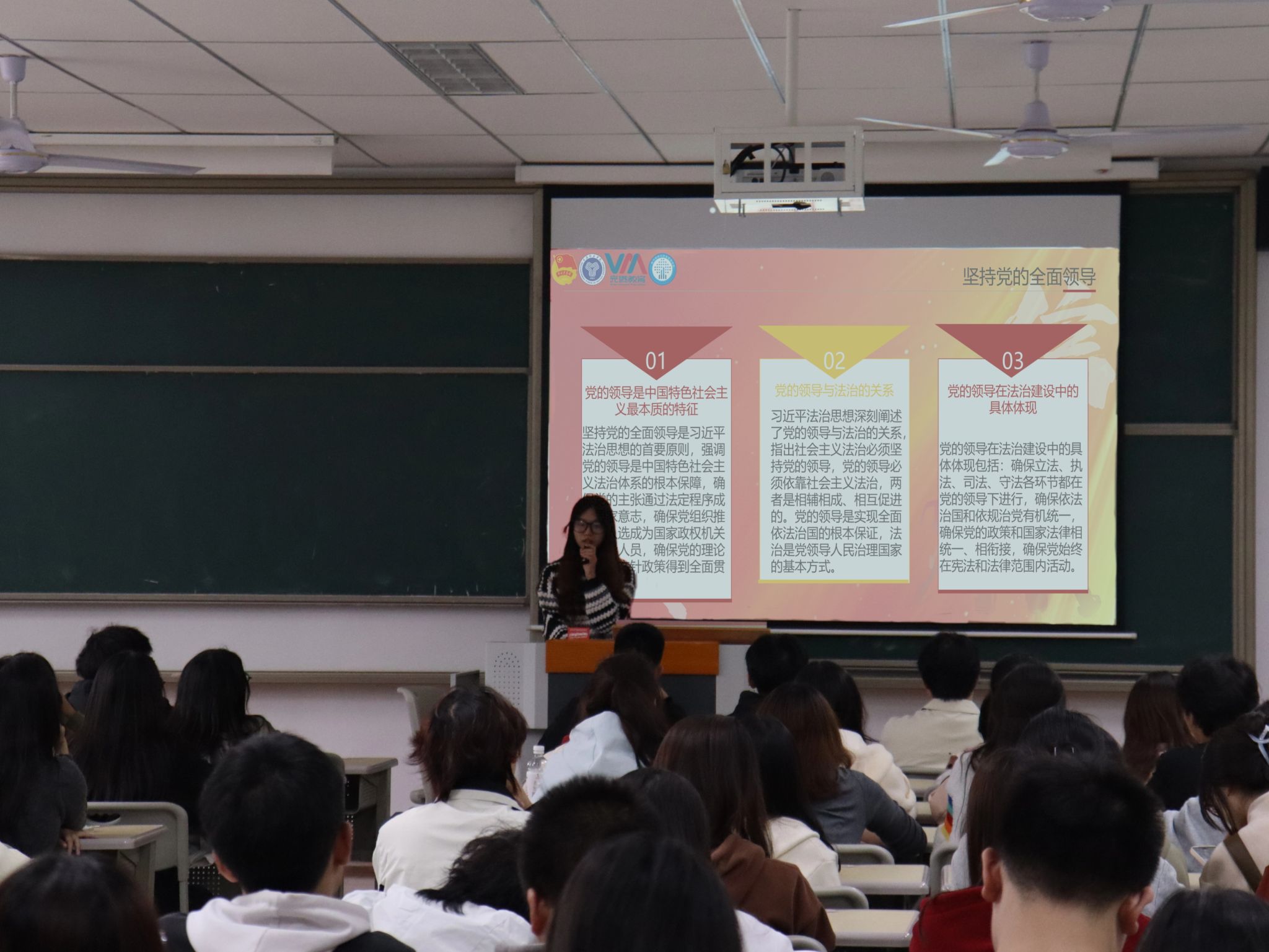 活动中,组织部部长罗垚围绕习近平法治思想展开了全面的讲解,带领大家开启了一扇通往法治思想宝库的大门。其讲解内容涵盖了众多版块,如科学体系之严谨架构、精髓要义之深刻阐释、实践路线之清晰规划以及与青年教育之紧密关联等。