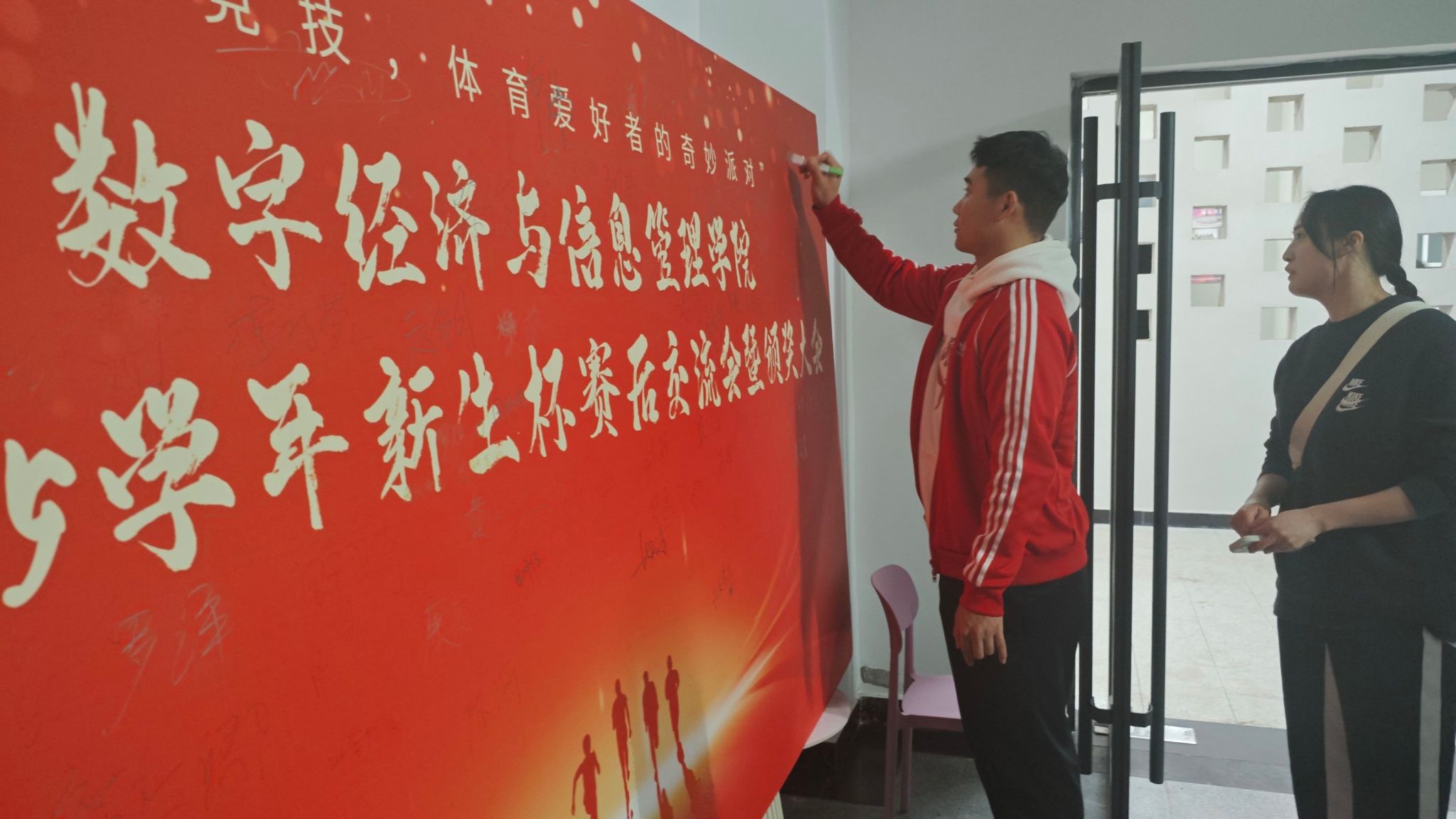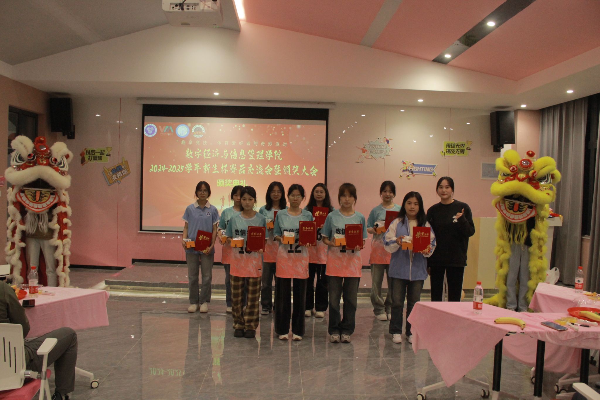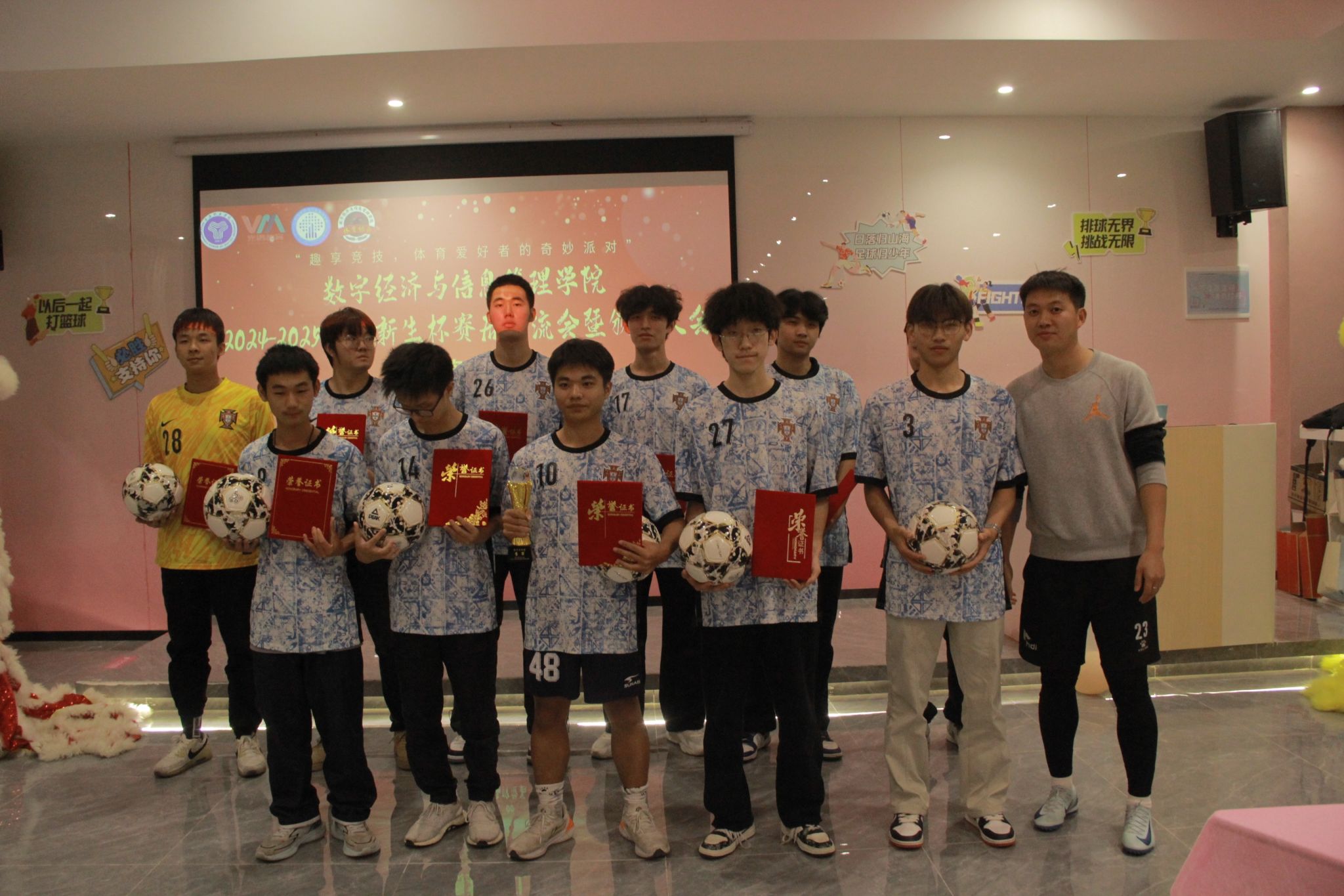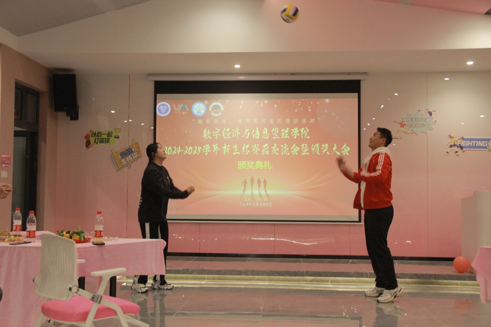 为促进数字经济与信息管理学院体育运动更好发展,增促进新生之间交流与融合,培养新生的团队精神和竞技意识,展示新生才艺与综合素质。2024年11月11日19点,数字经济与信息管理学院体育协会于丁山书院天蝎座多功能室成功举办了“趣享竞技,体育爱好者的奇妙派对”——数字经济与信息管理学院2024-2025学年新生杯赛后交流会暨颁奖大会,本次活动邀请了数字经济与信息管理学院学工副院长任瑞娟院长、竞技体育中心主任江华主任及竞技体育各板块教练代表廖秋怡老师、陈伟业老师、苏世达老师、江华老师和罗晨老师,数字经济与信息管理学院学工办主任任超群老师、团总支书记潘锐老师及学院全体辅导员出席。此外,本次活动的学生群体不仅包含数字经济与信息管理学院2024-2025学年新生杯的6支参赛队伍,还邀请到了各年级的文体委员们,旨在通过竞技体育活动的交流会的良好氛围来增强我院学生们的竞技精神和团队意识,从而为之后的竞体活动奠定良好的学生基础。