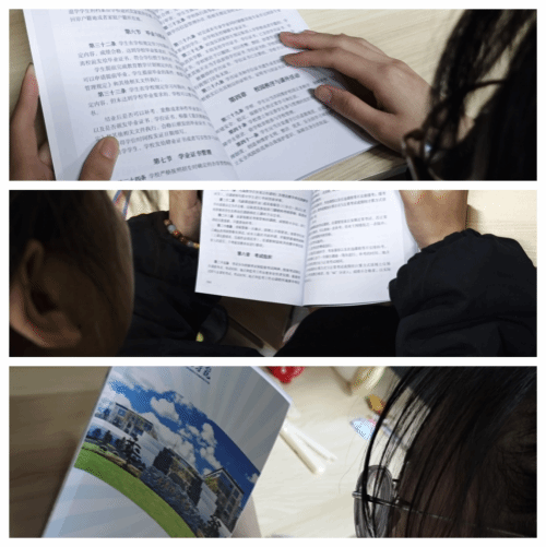 活动伊始,同学们在精心组织下,纷纷化身为“学习小课堂”。在明亮的教室、实验室,温馨的寝室等场地,展开学习。通过个人的学习、集体讨论、PPT展示、案例剖析等多样形式,将学生手册里那些看似严肃冰冷的条文,解读得生动而有趣。特别是在讲解学业考核相关规定时,组织者结合了同学们可能遇到的一些实际问题,详细阐述了补考、重修、学分绩点计算等细则,让同学们对这些关乎学业进程的重要内容有了更加清晰的理解。通过生动的案例分析,同学们对如何避免学业上的失误、如何规划自己的学术道路有了更明确的方向和更强的行动力。