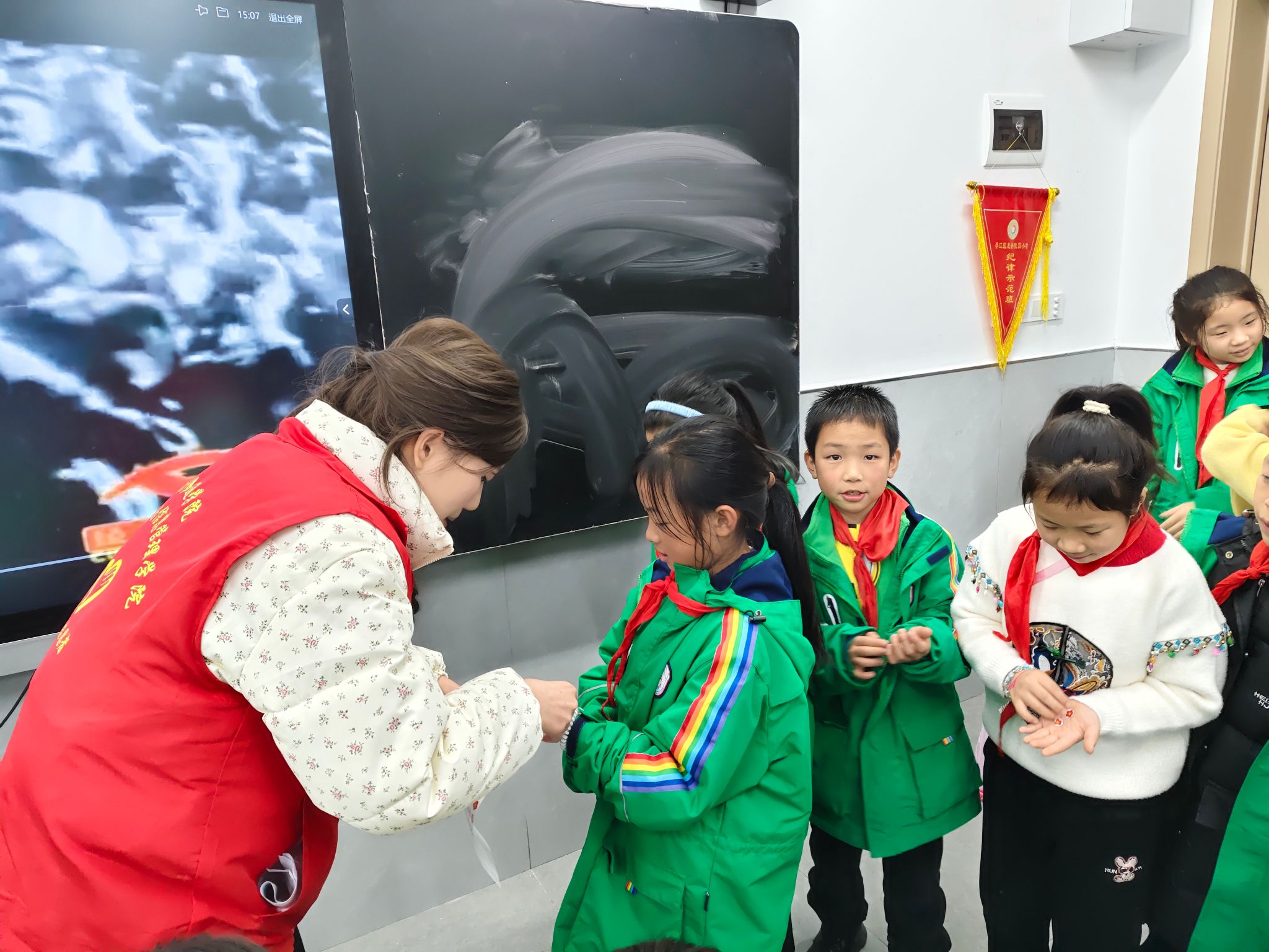为了让更多儿童知晓“西气东输”等国家战略工程的重要性,掌握保护管道的基础知识,并深刻理解我国党旗、国旗、军旗、团旗和队旗的意义与联系。2024年12月4日下午14:00-16:00,数字经济与信息管理学院青年志愿者协会于陵园小学惠登校区成功开展“管道守护与国旗飘扬”综合知识普及与爱国主义教育课程活动。