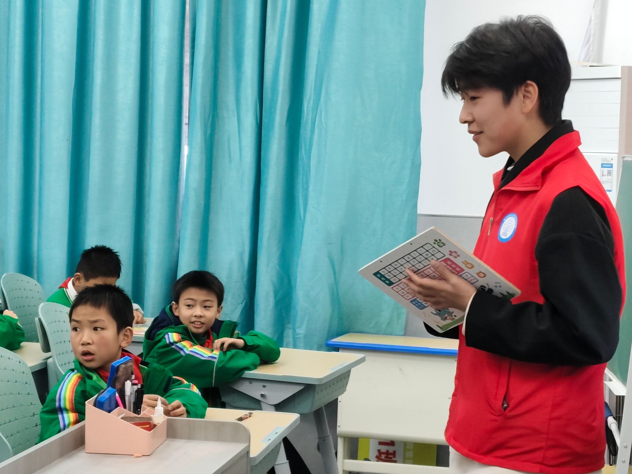 在志愿者的鼓励下,孩子们积极分享对旗帜的感悟,不仅让他们对这些旗帜有了更深刻的理解,而且激发了他们对国家的深厚情感。