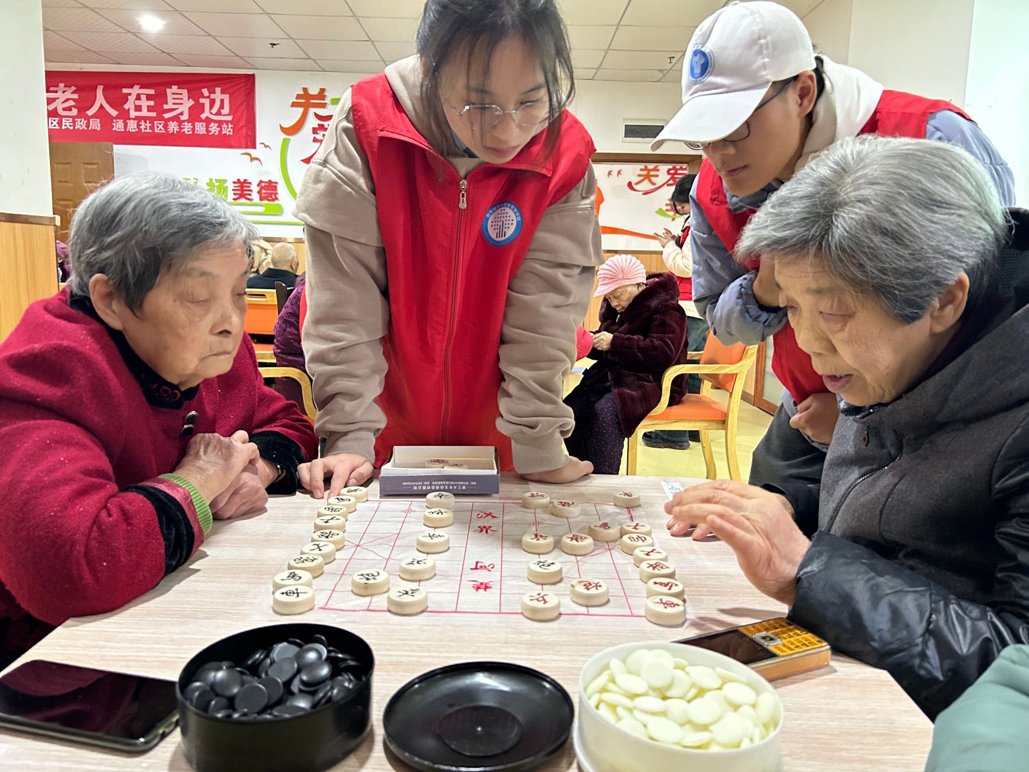 志愿者们充分发挥了团队协作精神,分工明确,各司其职。各自负责游戏规则的讲解与示范、现场秩序的维护及安全监督等工作,并为老人们拍照留念,记录下这一美好瞬间。在“圈定胜利”游戏中,志愿者们耐心地为老人们调整站位,确保每位老人都能享受到游戏的乐趣。而在“一棋三用”游戏中,志愿者们则化身为象棋、围棋、五子棋的“小老师”,指导老人们进行棋艺切磋,让老人们在智力游戏中找到乐趣。此次活动不仅让老人们感受到社会的关爱与温暖,也让志愿者们深刻体会到奉献爱心的价值与意义。