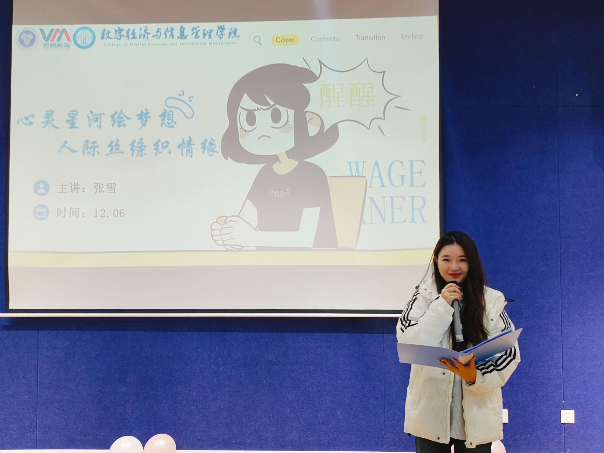 在这个纷繁复杂的世界里,每个人的心灵都是一片独特的星河,闪耀着梦想的光芒;而人际关系则如丝绦般交织,编织出深厚的情缘。数字经济与信息管理学院于12月6日13:30在綦河书院苍山阶梯活动室举办了以“心灵星河绘梦想,人际丝绦织情缘”为主题的心理月活动,本次活动邀请到了学院心理专项岗老师张雪和心理健康教育与咨询中心兼职心理老师田园园。该活动吸引了众多学生参加,共同探索心灵的奥秘,编织美好的人际关系。