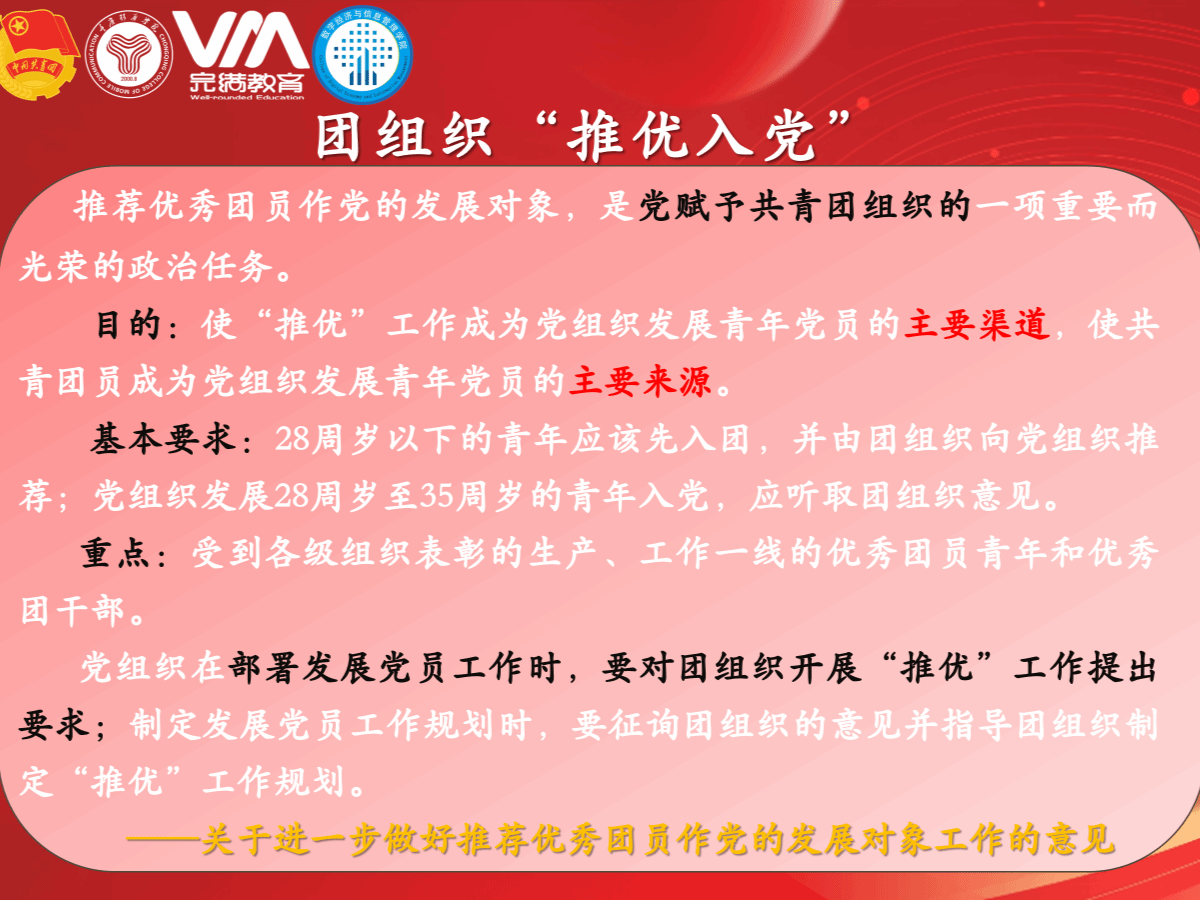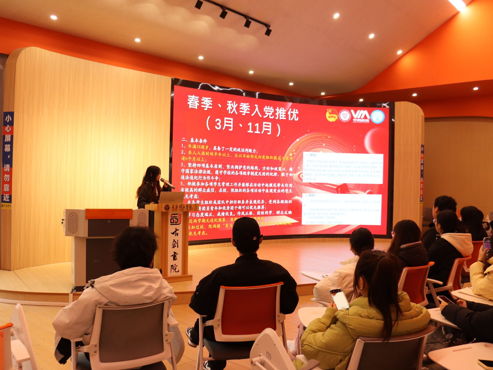 在共青团众多工作任务里,为党组织输送新鲜血液是重中之重的使命,而 “推优入党” 工作便是达成这一使命的关键路径。“推优入党”工作作为共青团为党组织输送新鲜血液的重要使命,一直是学院共青团工作的重中之重。在培训中,罗部长详细解读了“推优入党”的选拔标准、程序和要求,同时她还介绍了完满超级团支部的示范创建活动,展示了基层团组织在心理健康、活动创新等方面的活力与创造力。“推优入党” 工作的严谨开展以及完满超级团支部的积极创建,展现了数字经济与信息管理学院共青团在人才培养与组织活力激发方面的不懈努力。