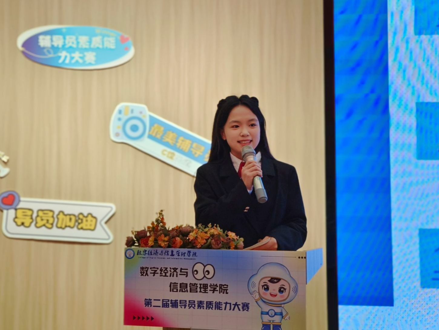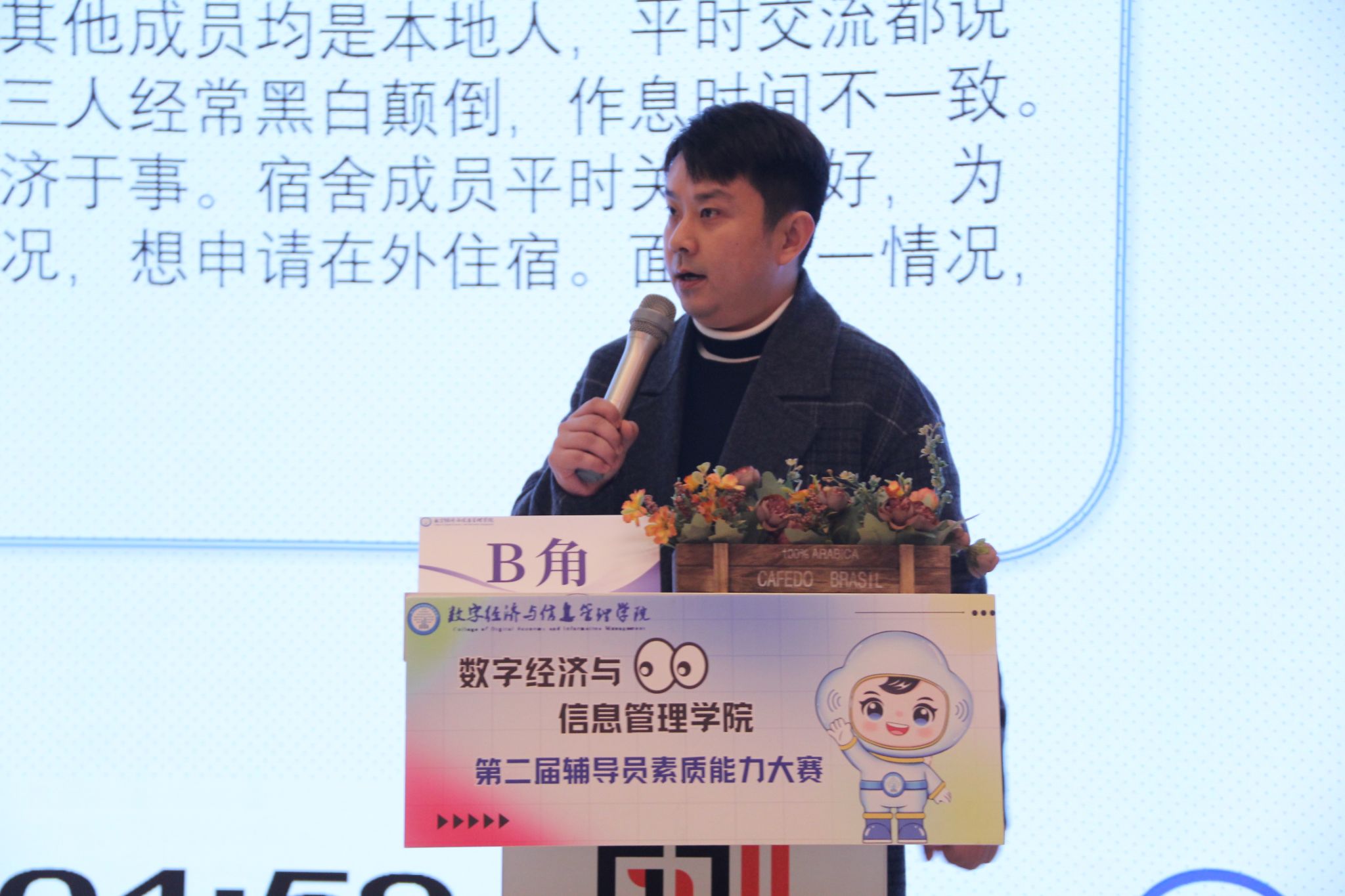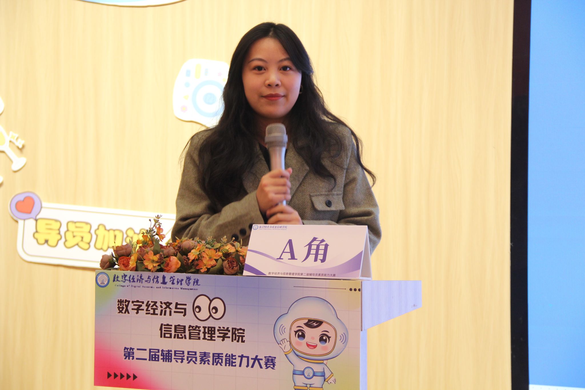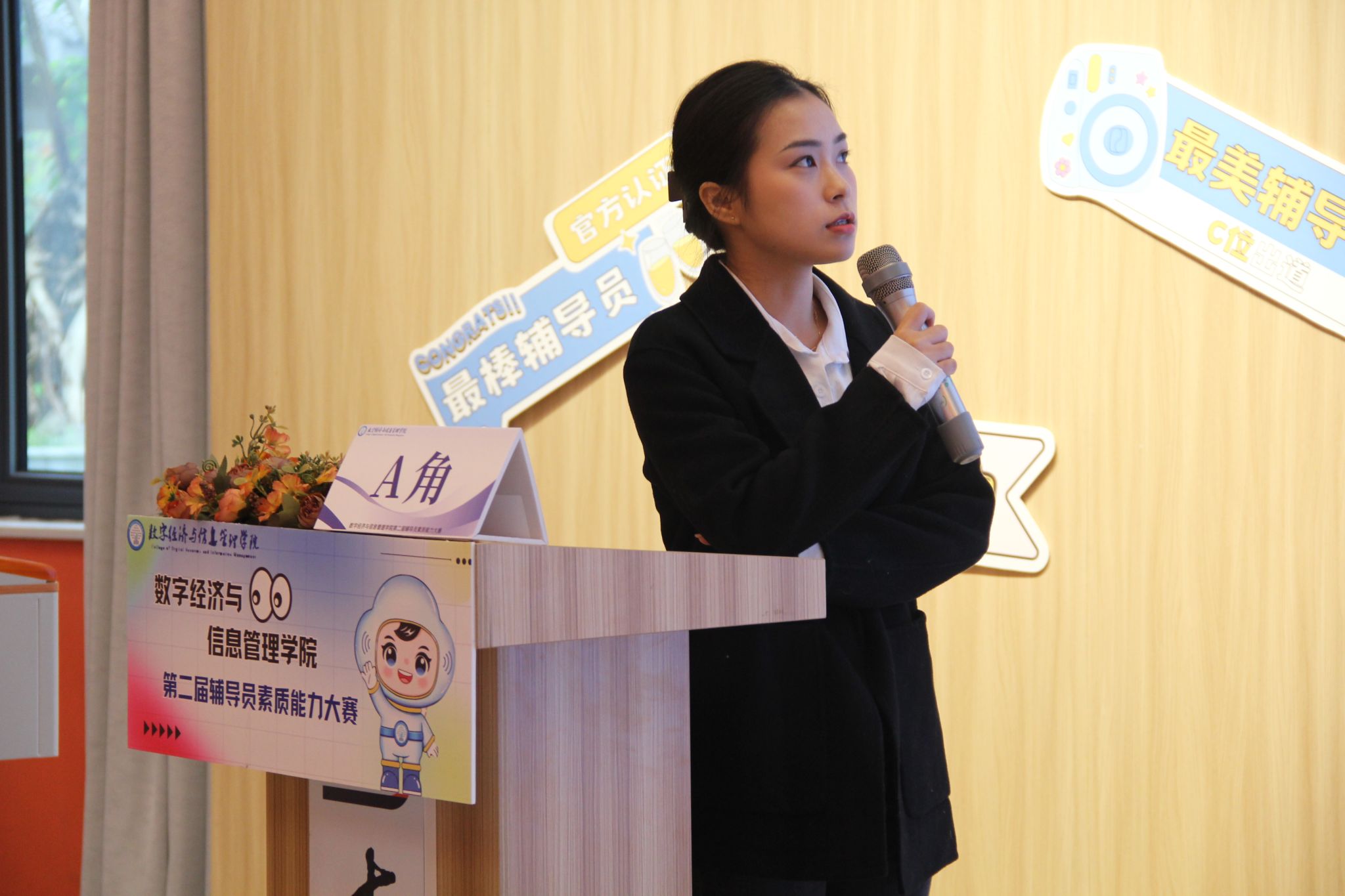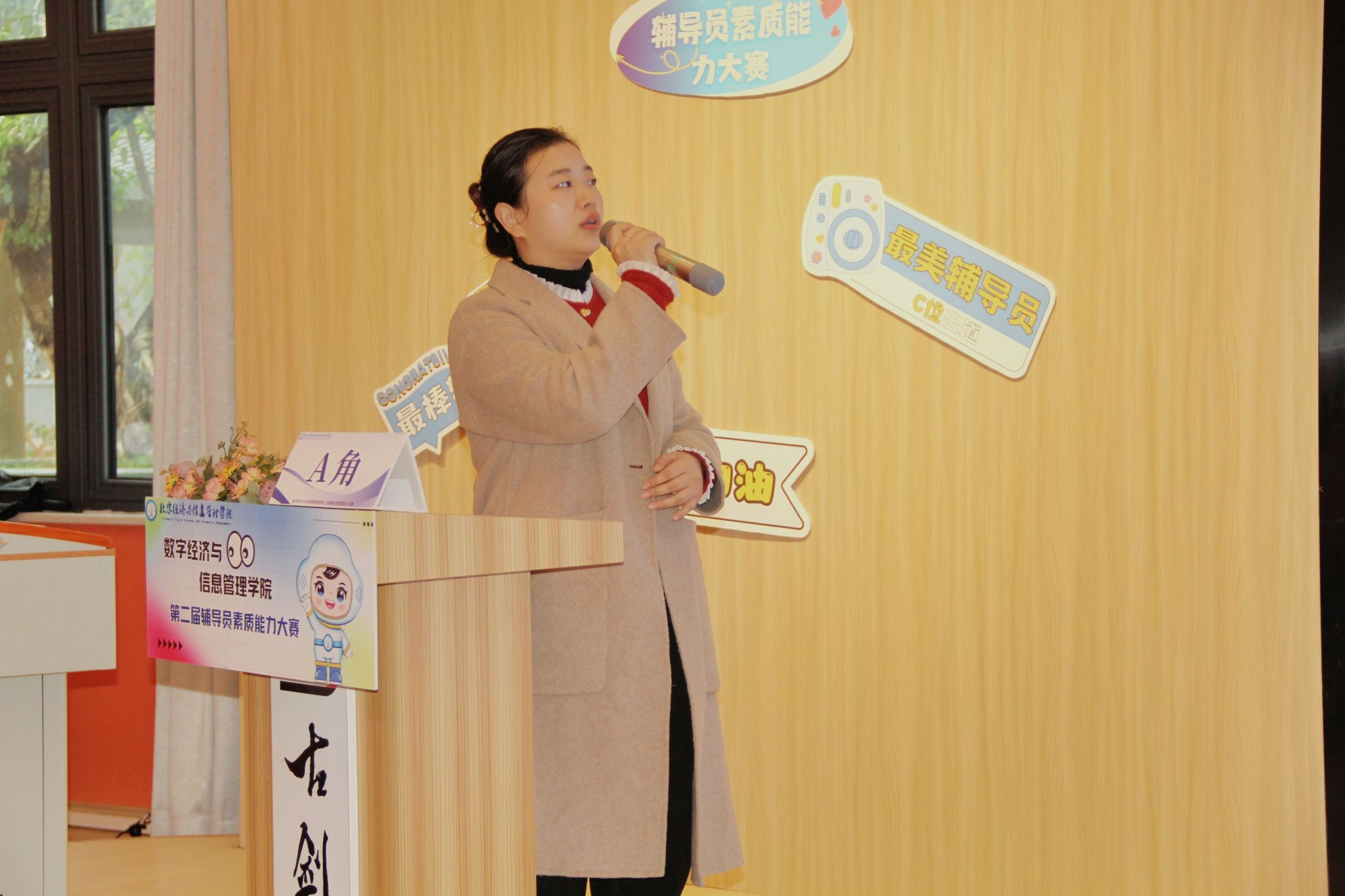 为进一步提升辅导员的职业能力与综合素养,推动学院学生工作队伍的专业化建设,12月6日,数字经济与信息管理学院第二届辅导员素质能力大赛决赛在古剑书院 含光·多功能报告厅举行。本次大赛特别邀请了数字经济与信息管理学院学工副院长任瑞娟老师、大健康管理学院学工办主任童学容老师、通信与信息工程学院团总支书记田海燕老师、戏剧影视学院学工办主任曾玉娇老师担任评委,数字经济与信息管理学院辅导员参加,部分学生到场观摩比赛。